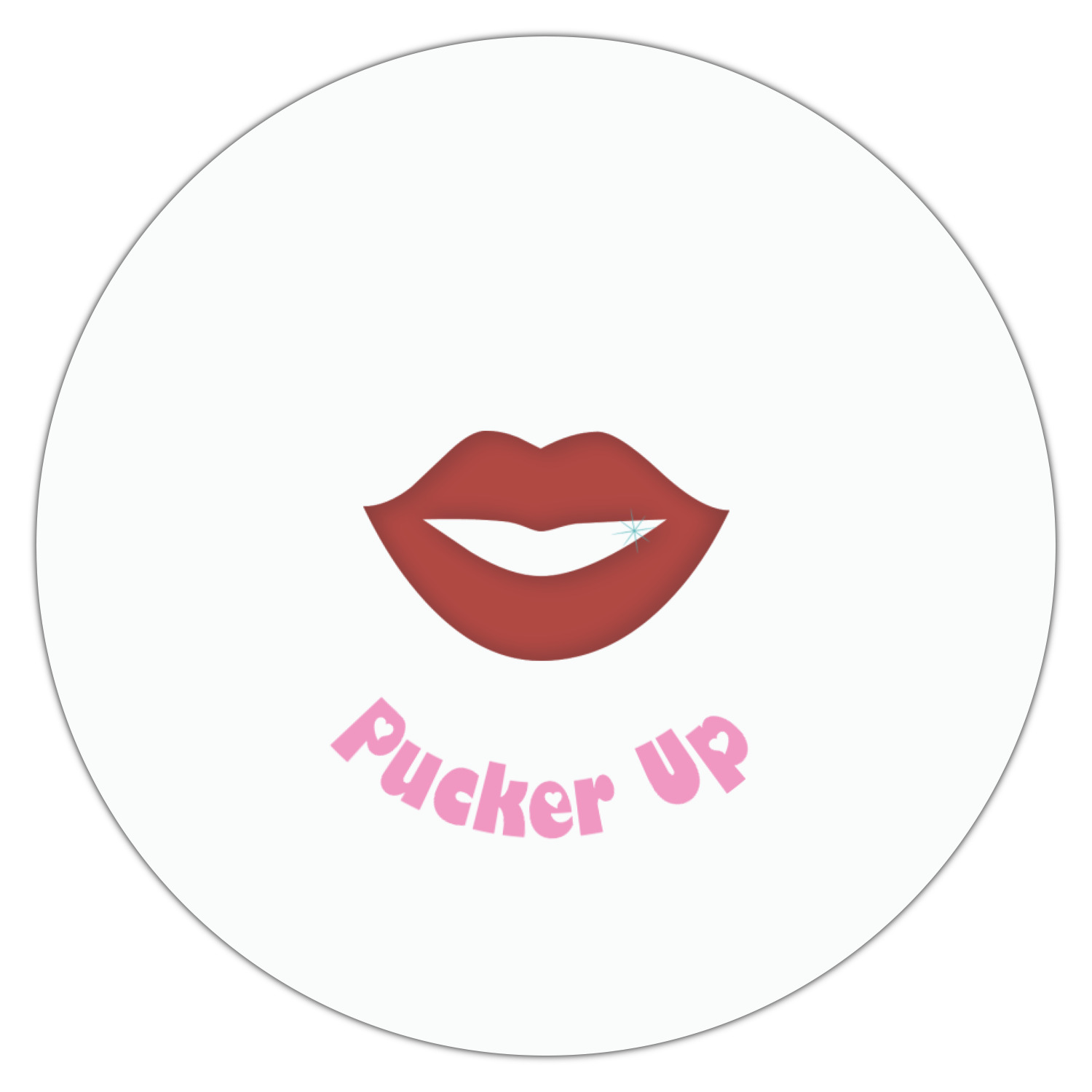 This Lips / Pucker Up design was created by very own Tina D'Astoli for her make up bag. We thought it was beautiful enough to convert to a full fledged design for all our products. It is a layered design with striped in the background (Tina of course chose pink; the stripes are re-color-able), layered with lips. Tina also chose to the use a large graphic and text layout - with lips and the words "Pucker Up" in a black with the Holes are Hearts font.