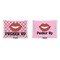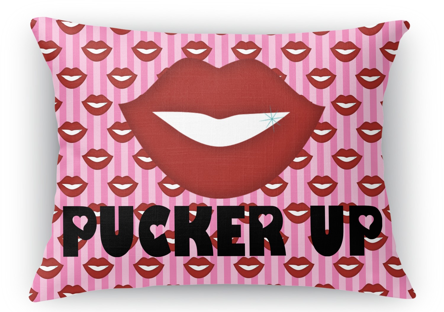 This Lips / Pucker Up design was created by very own Tina D'Astoli for her make up bag. We thought it was beautiful enough to convert to a full fledged design for all our products. It is a layered design with striped in the background (Tina of course chose pink; the stripes are re-color-able), layered with lips. Tina also chose to the use a large graphic and text layout - with lips and the words "Pucker Up" in a black with the Holes are Hearts font.