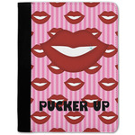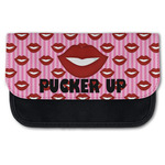 This Lips / Pucker Up design was created by very own Tina D'Astoli for her make up bag. We thought it was beautiful enough to convert to a full fledged design for all our products. It is a layered design with striped in the background (Tina of course chose pink; the stripes are re-color-able), layered with lips. Tina also chose to the use a large graphic and text layout - with lips and the words "Pucker Up" in a black with the Holes are Hearts font.