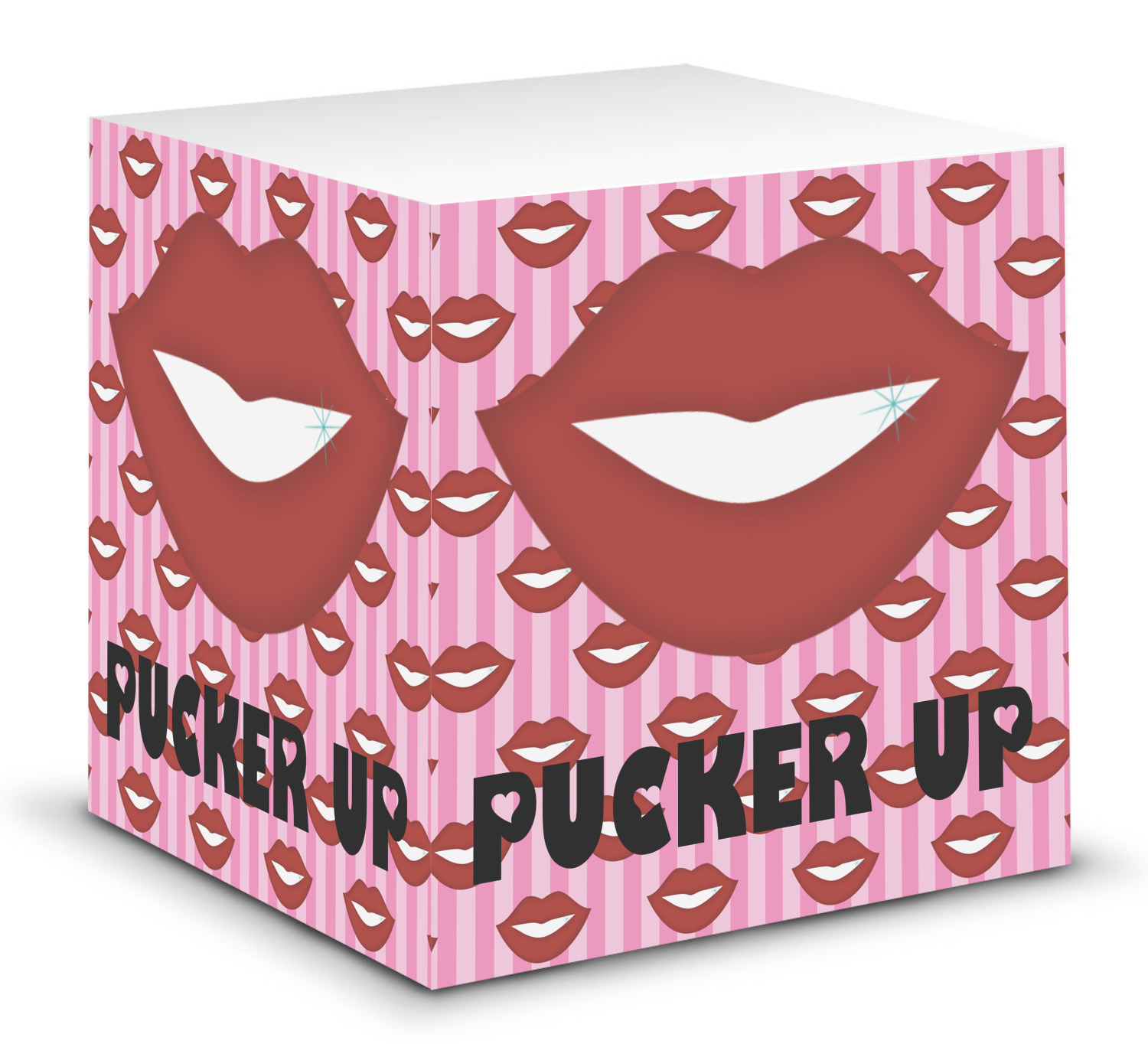 This note cube features 700 sheets of matte, white paper. Each sheet measures at 3.5 by 3.5 inches and has an adhesive strip at its top. Your personalized design is displayed on all four edges of the sticky pad.