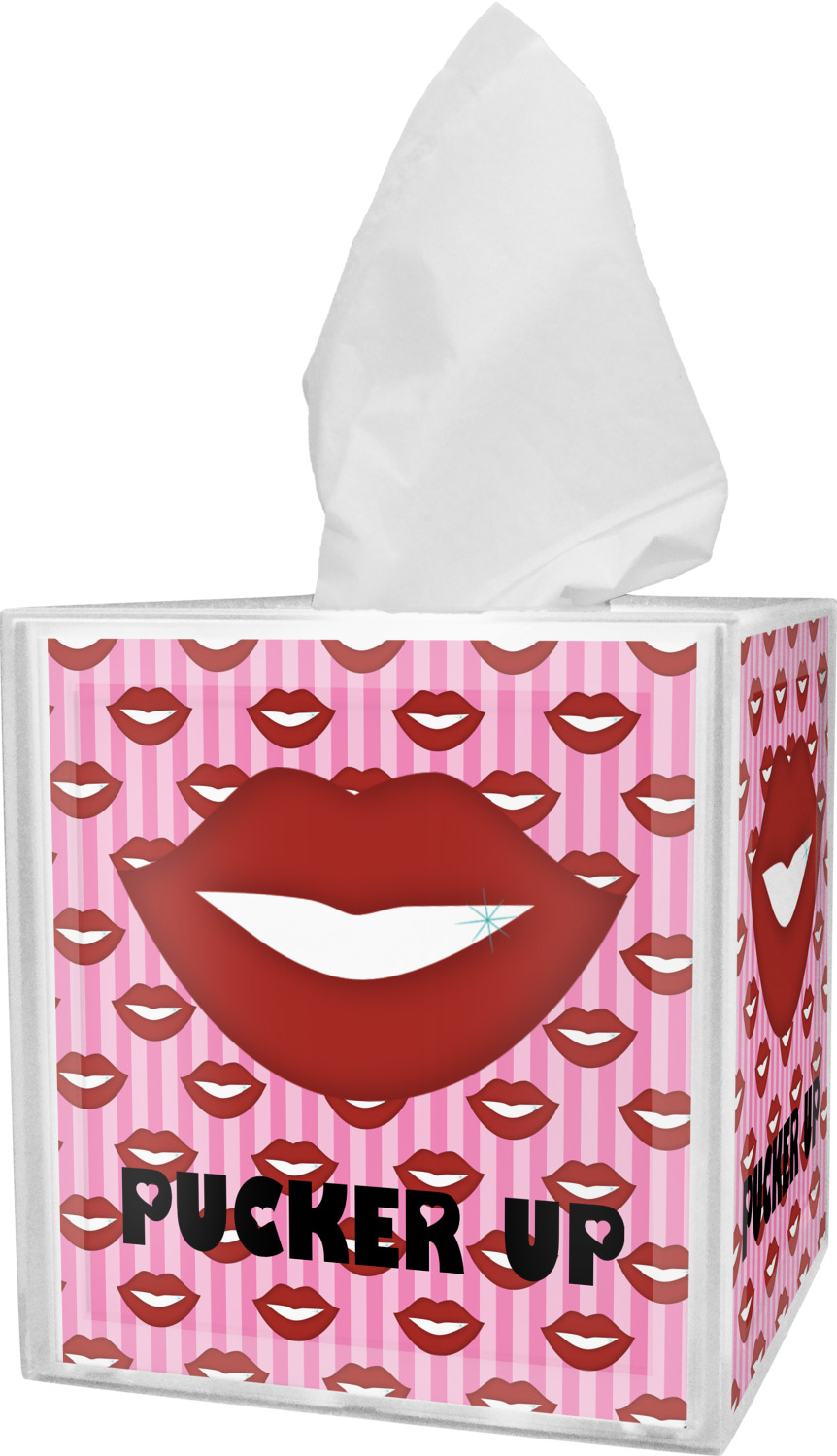 These tissue holders are built from durable acrylic and display your unique personalization on fine-quality vinyl inserts placed within the four sides and top. The box features two pieces, allowing you to easily switch out tissue boxes. On the sides, youll find ridges that ensure the top and base fit securely in place. The bottom of these tissue box holders has four, rubber, non-slip pads to prevent the box from scuffing any surface you decide to display it on. Each box can fit a standard 5 by 5-inch box of tissues.