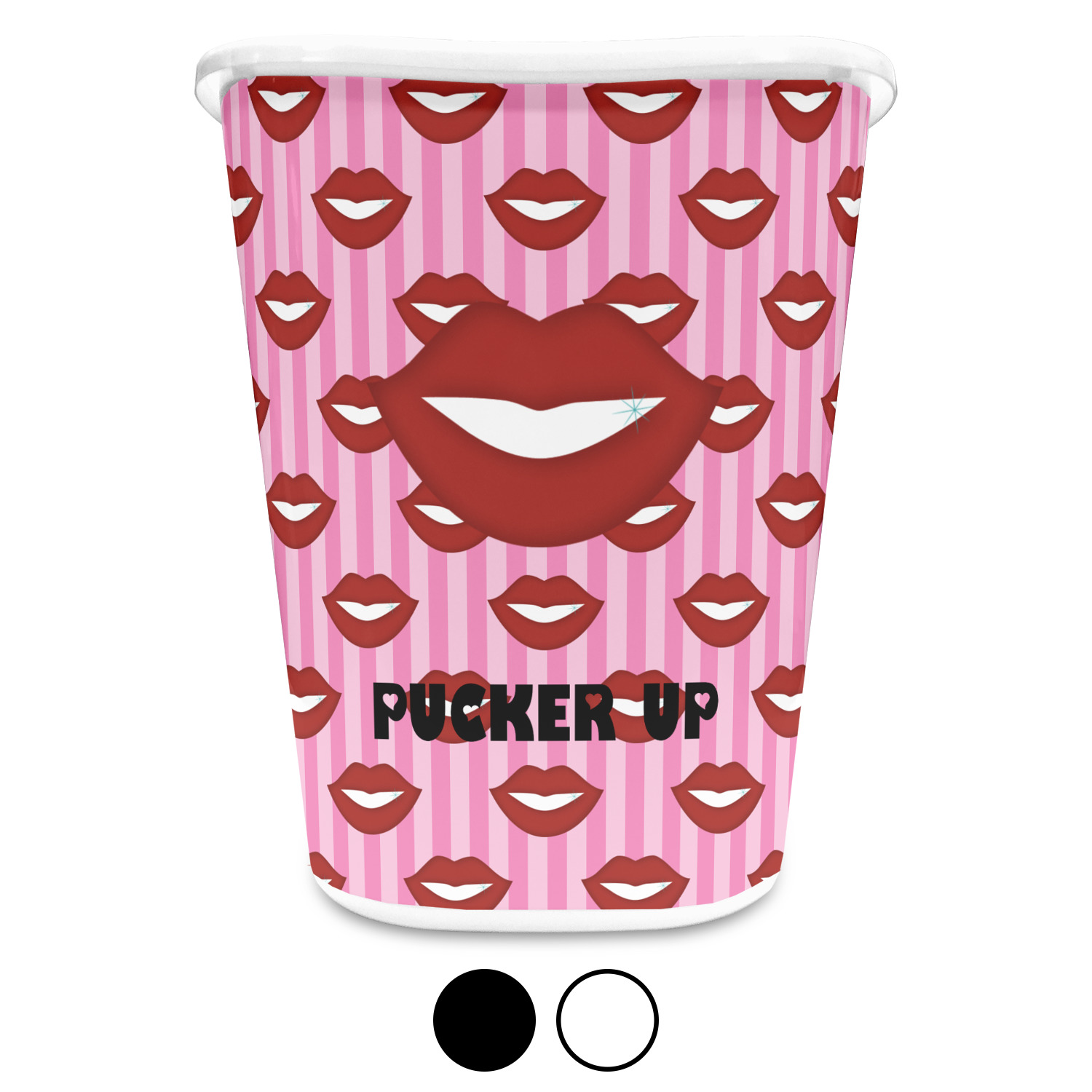 You can choose to purchase these decorative wastebaskets in either a white or a black color that will show on the base and the upper rim. Your customization is printed on a high-gloss, fine-quality vinyl adhesive, and you can choose to either have this adhesive applied to one side only or to both sides. As such, this plastic wastebasket can be single-sided or double-sided, depending on your creative vision. Your customization is printed using durable inks, making the design waterproof and resistant to fading over time.
