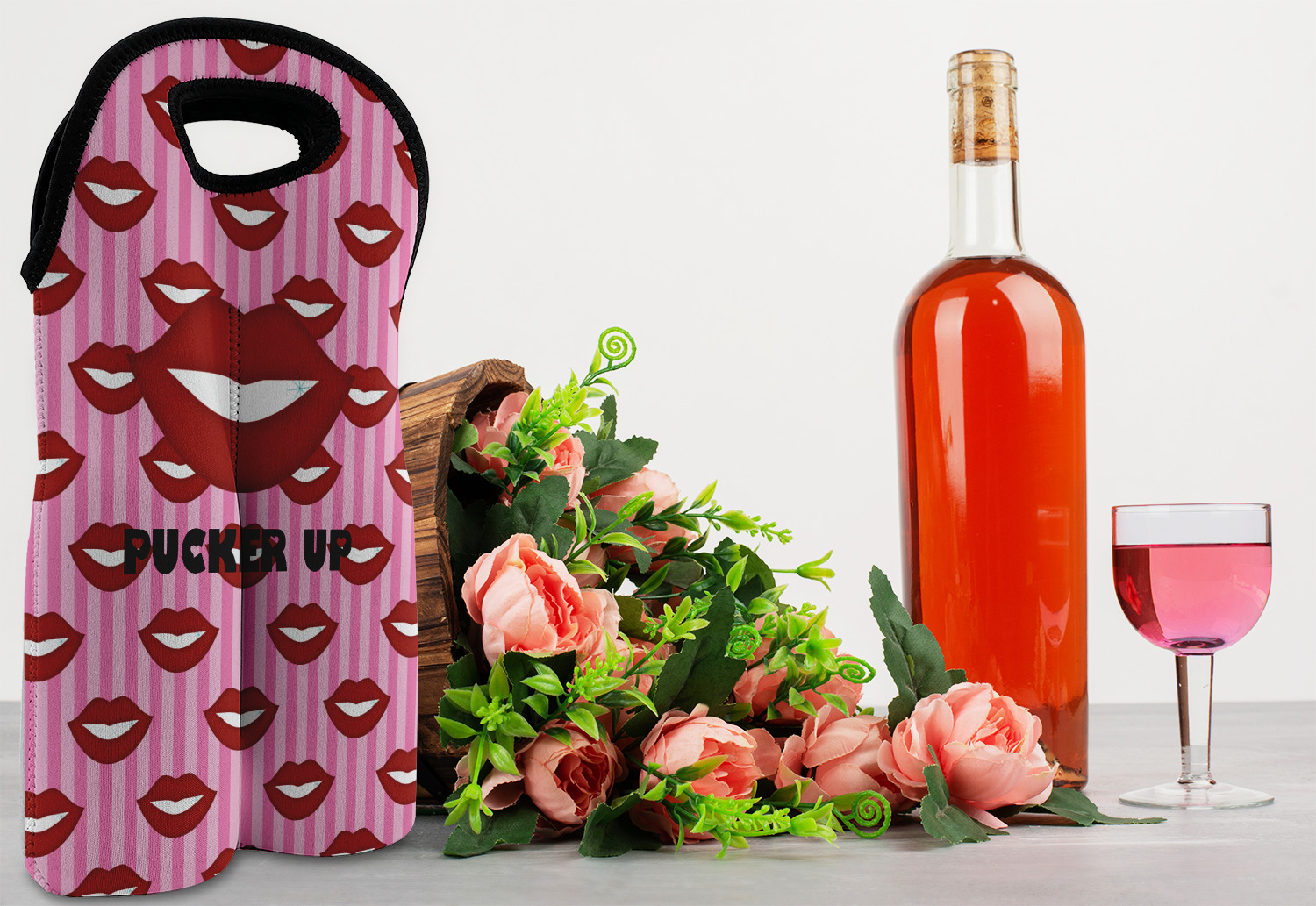 These tote bags are insulated to keep the bottles cold and have a stitched separation down the middle and double handles to keep the two bottles safe and secure during travels.