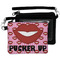 This Lips / Pucker Up design was created by very own Tina D'Astoli for her make up bag. We thought it was beautiful enough to convert to a full fledged design for all our products. It is a layered design with striped in the background (Tina of course chose pink; the stripes are re-color-able), layered with lips. Tina also chose to the use a large graphic and text layout - with lips and the words "Pucker Up" in a black with the Holes are Hearts font.