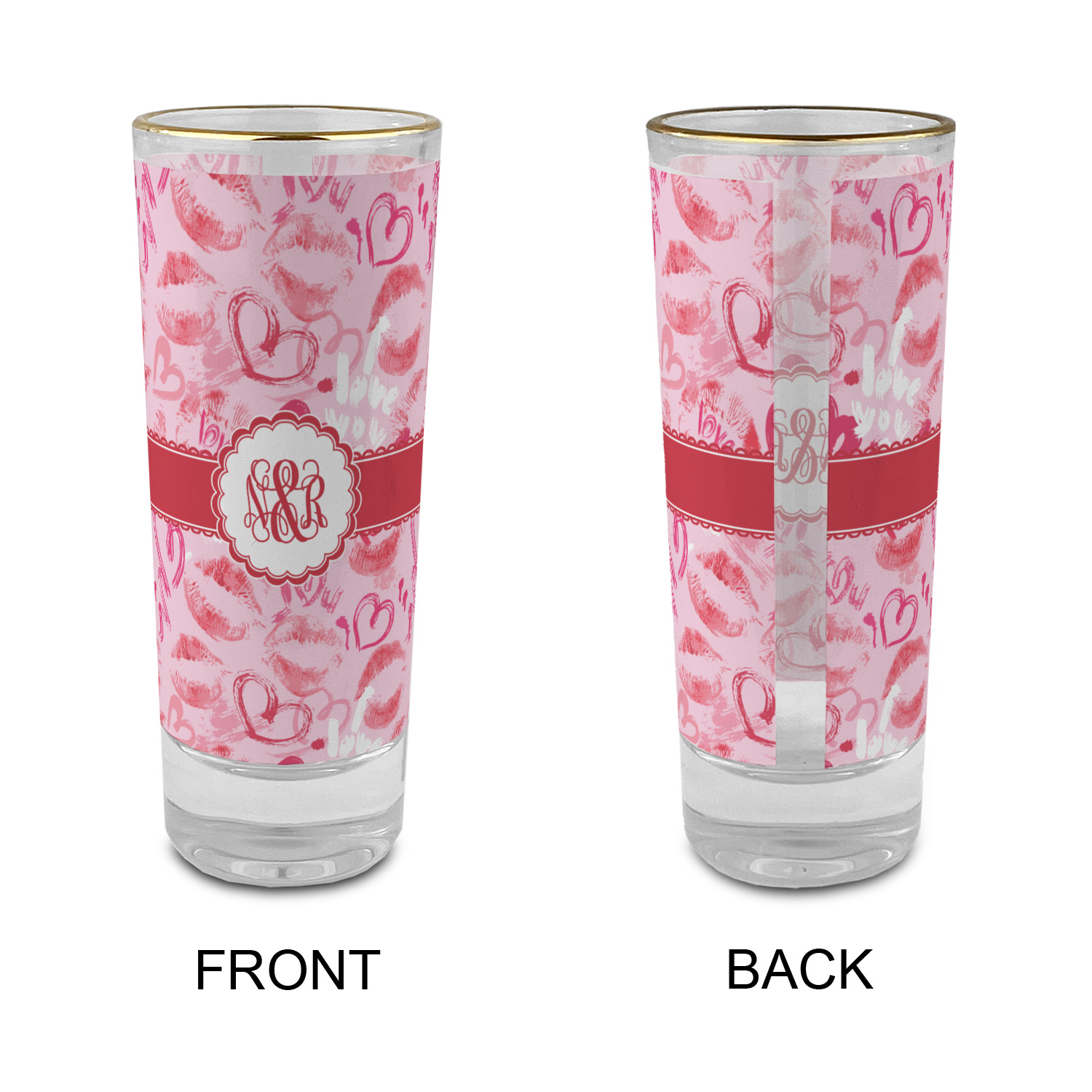 These glass shooter glasses are printed in full color with the design of your choice. These are a tall shooter 2 oz size and stand 4" tall. The print is a full wrap design to boldly display your personalization.
