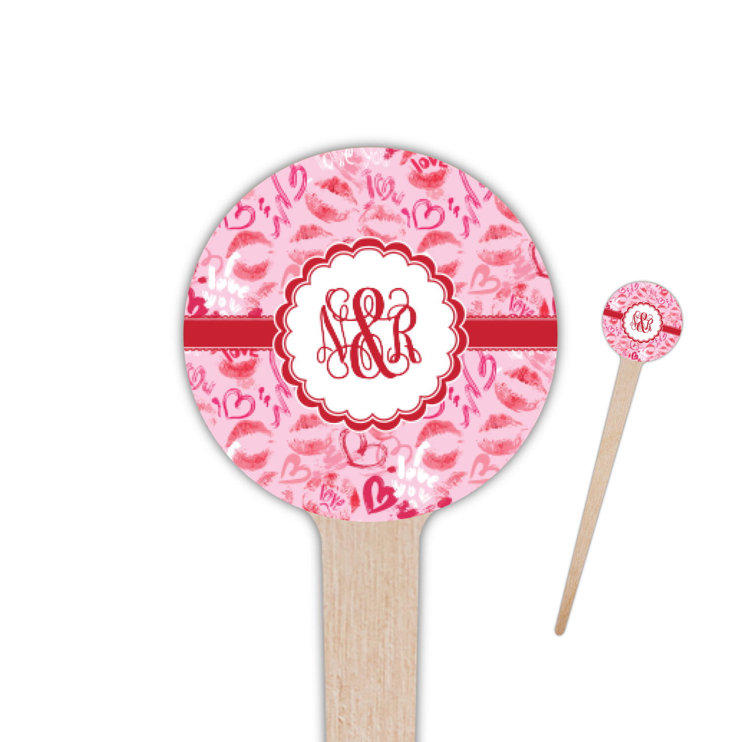 Mustache & Lip Designs for 4" Round Wooden Food Picks - Single-Sided