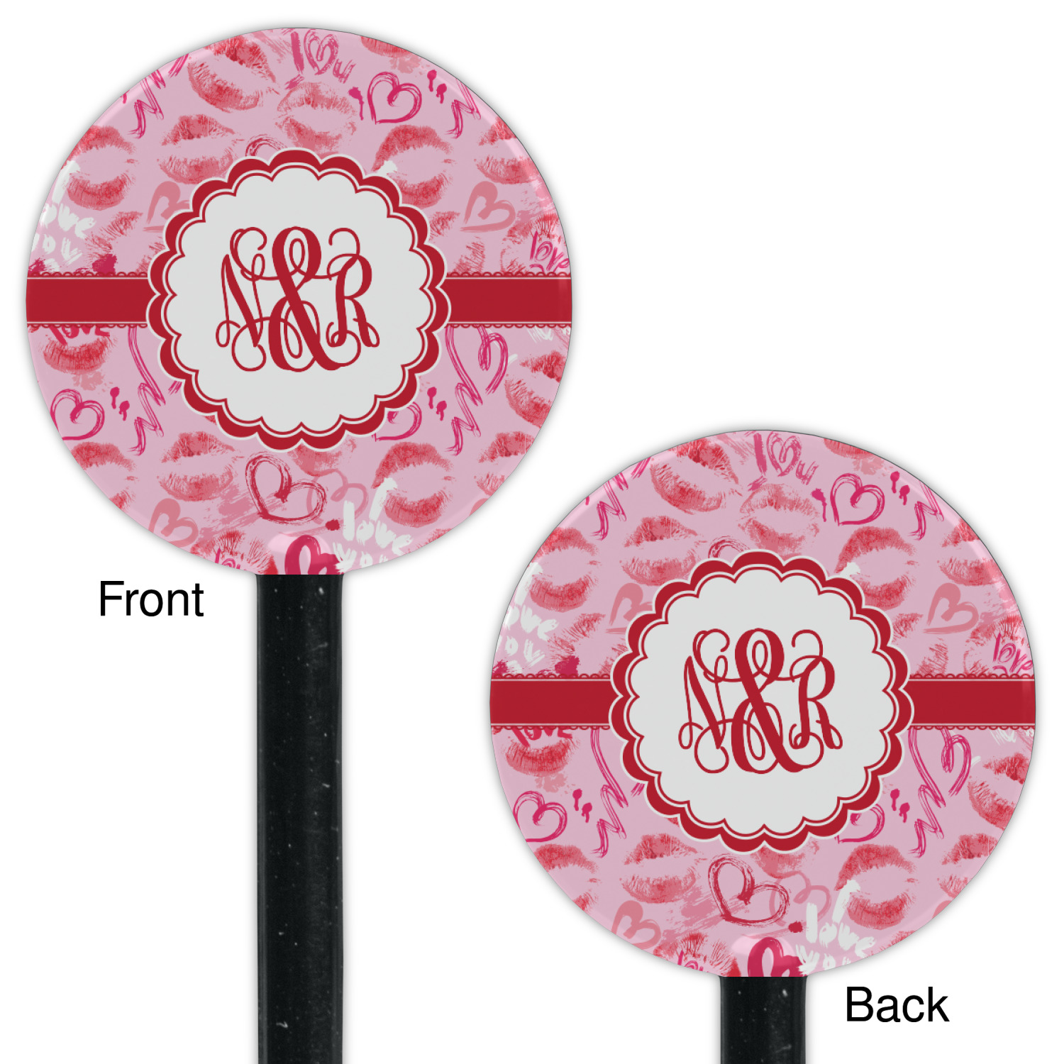 Shape + Symbol Designs for 5.5" Round Plastic Stir Sticks - Black - Double-Sided