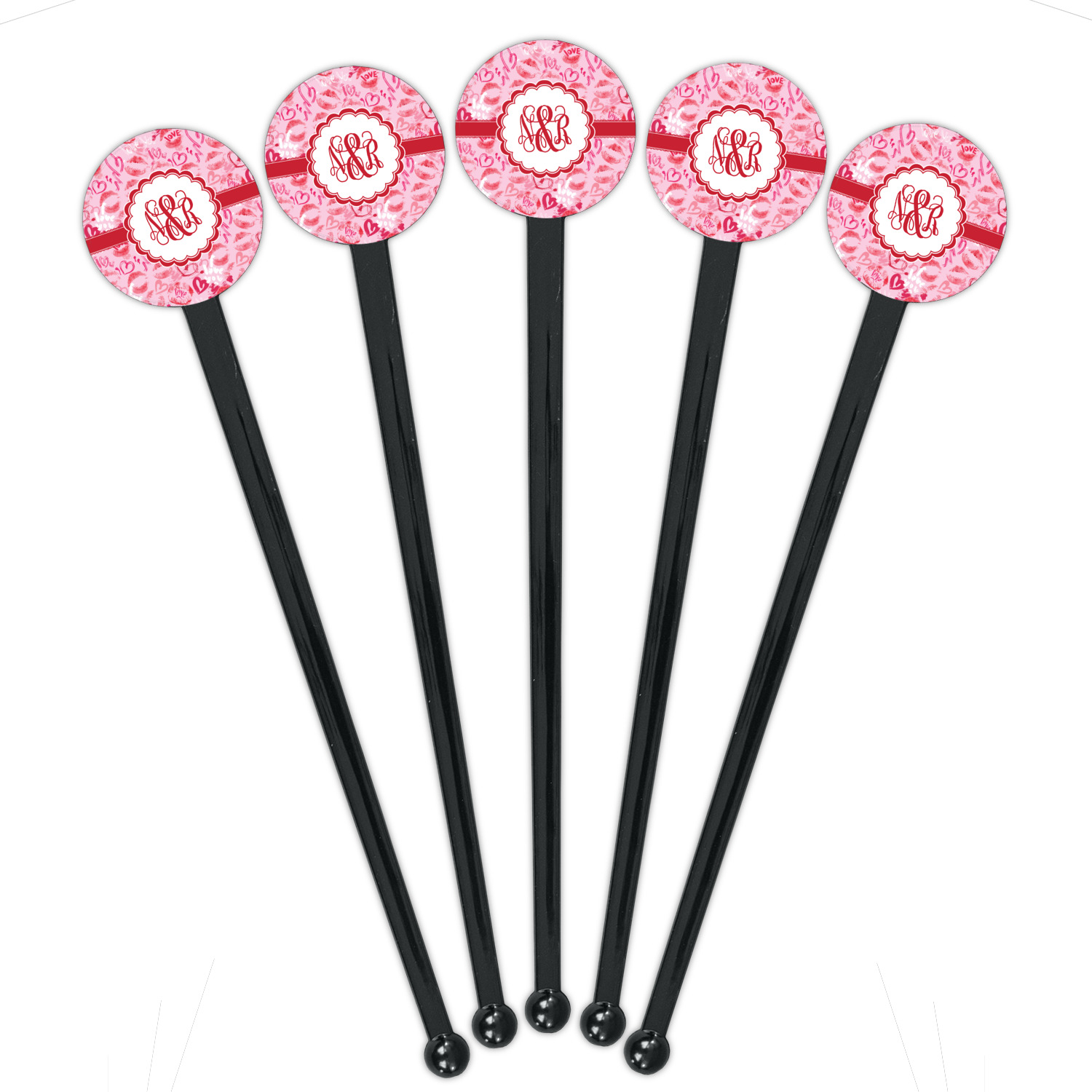 Mustache & Lip Designs for 7" Round Plastic Stir Sticks - Black - Double-Sided