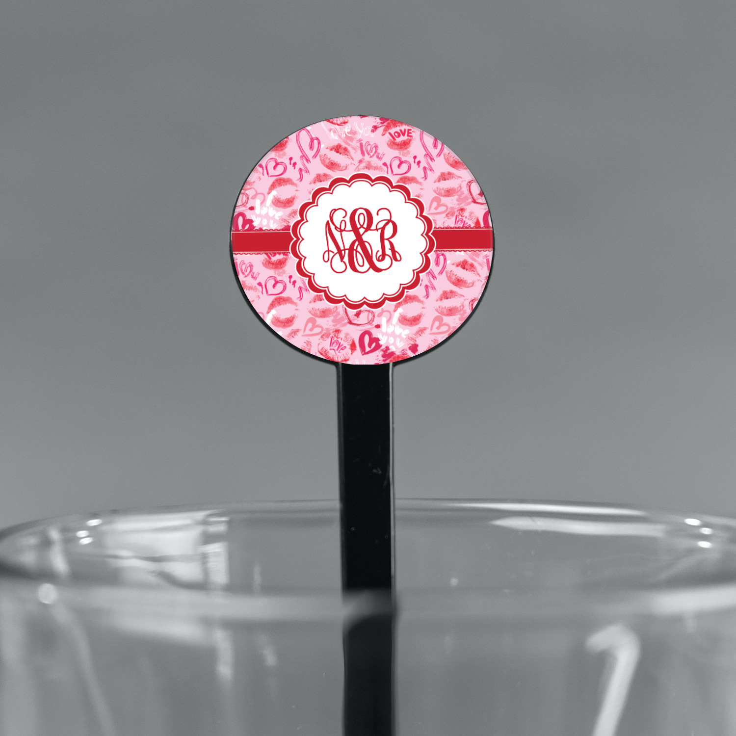 Shape + Symbol Designs for 7" Round Plastic Stir Sticks - Black - Double-Sided