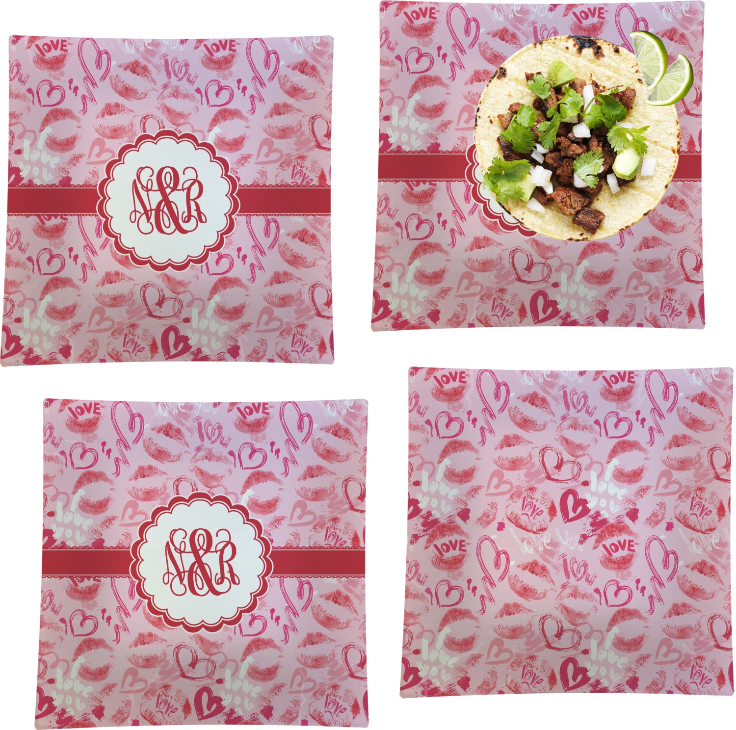 Mustache & Lip Designs for 9.5" Glass Square Lunch / Dinner Plates