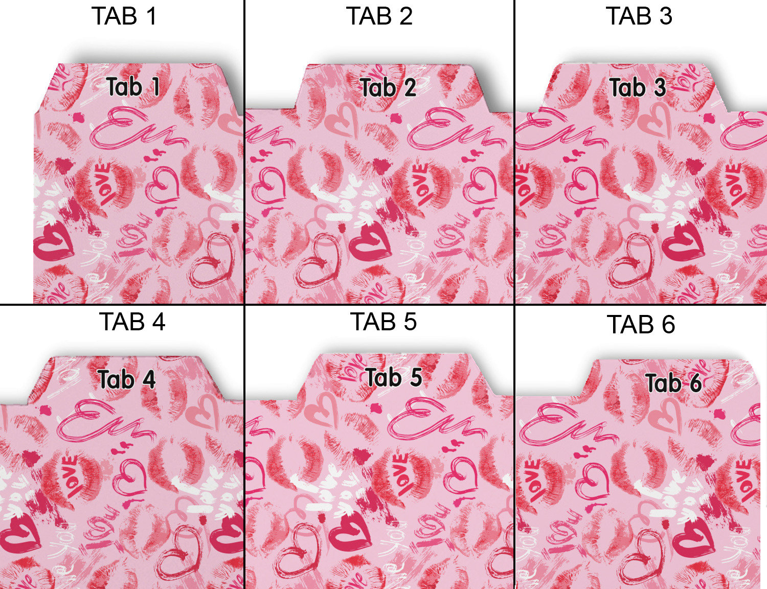 Mustache & Lip Designs for Binder Tab Dividers - Set of 6