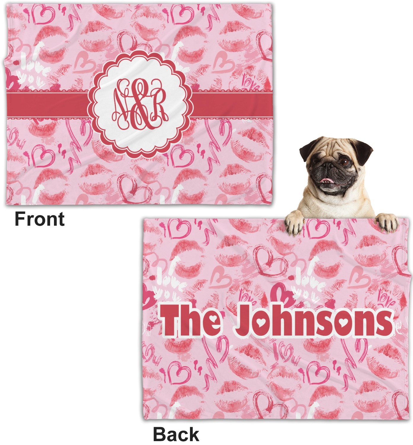 These dog blankets are crafted from a gentle, soft-to-the-touch, minky material. We print your customizations, either matching or differing, on both the top and underside of the blanket. These personalized dog blankets are available in two sizes: regular and large. Our regular size, at 40" x 30", accommodates small and some medium size dogs. At 60" x 50", our large dog blanket is a better fit for bigger breeds. Though specialized for dogs, these blankets still make a thoughtful gift for your favorite feline, or any other pet in mind!