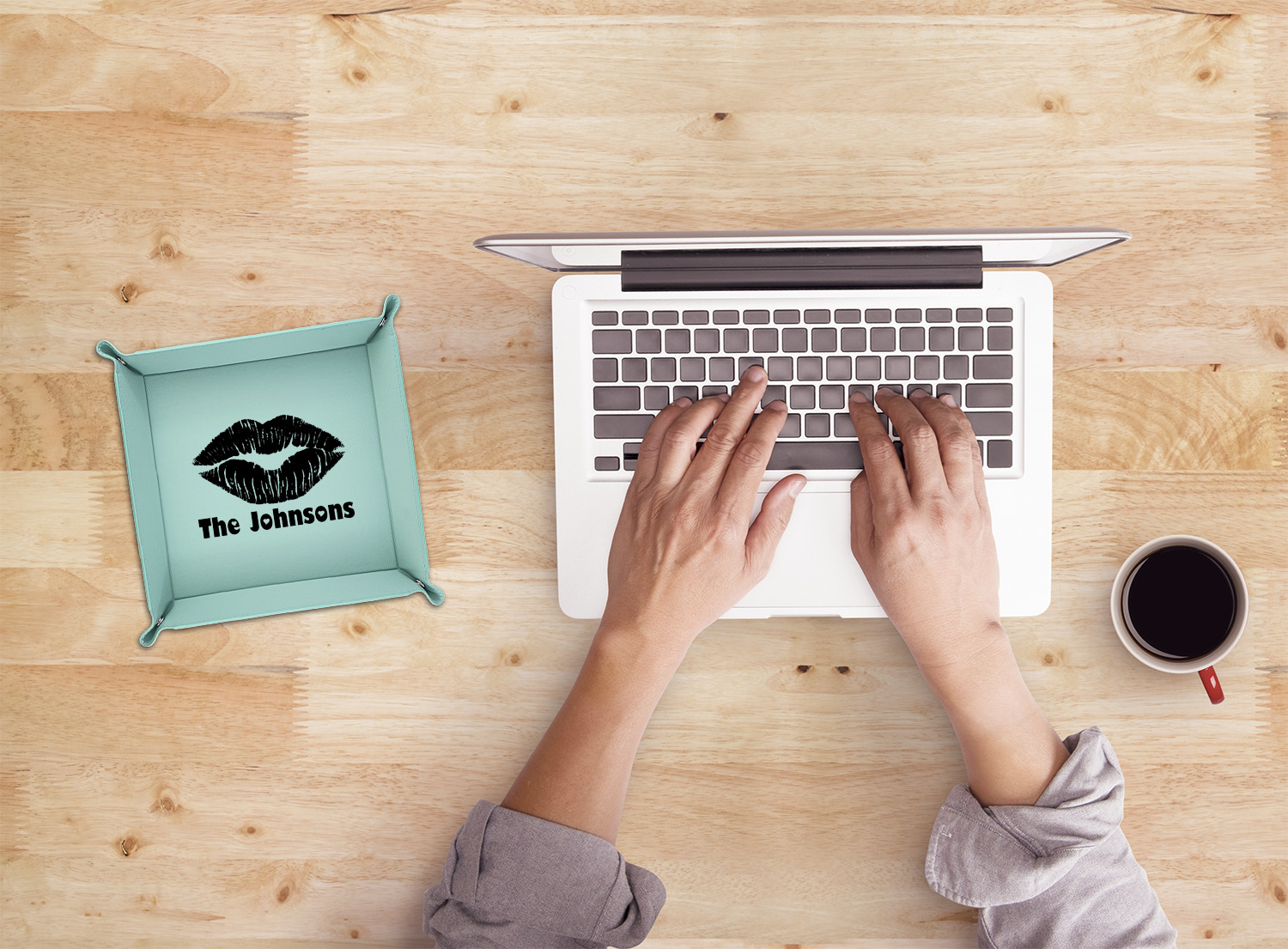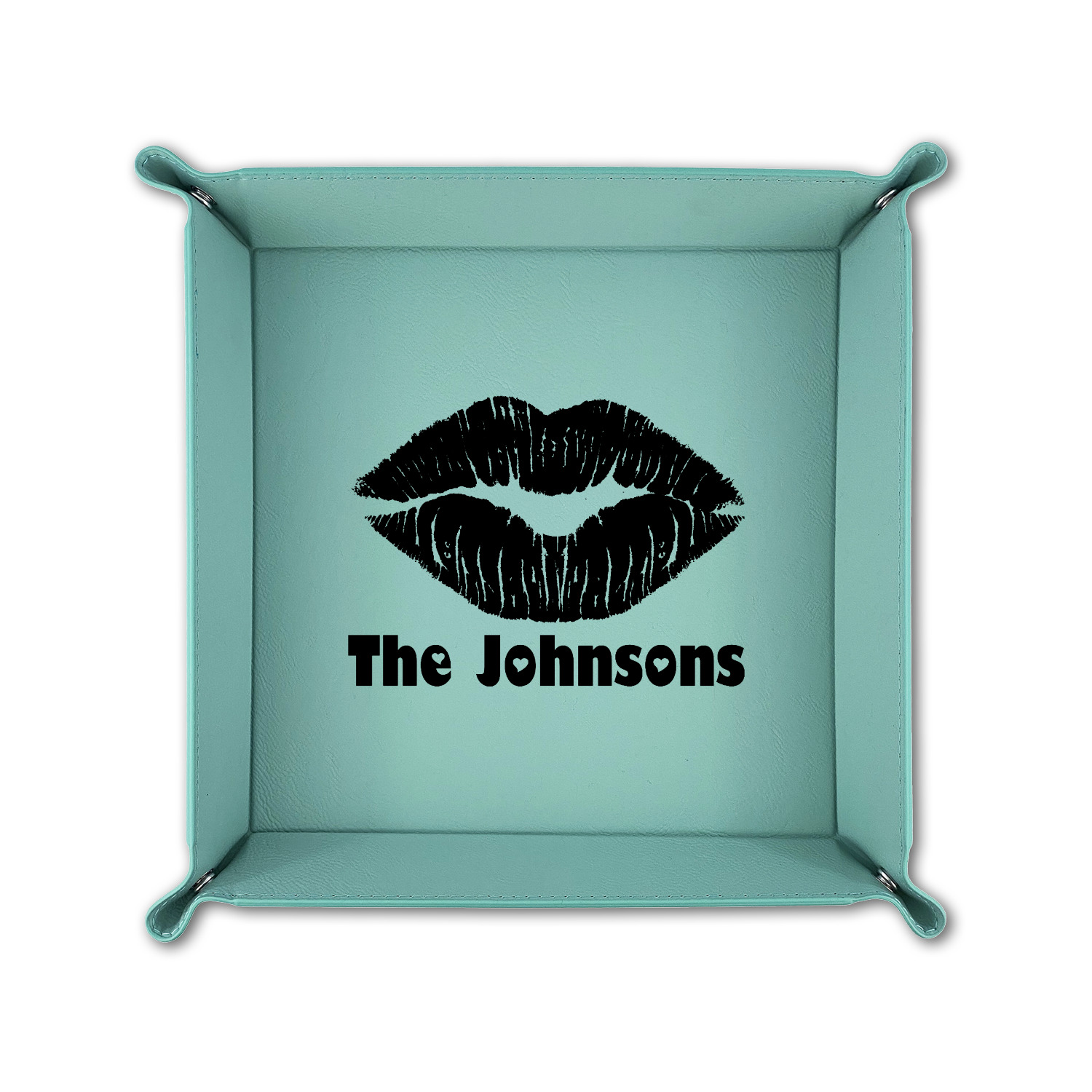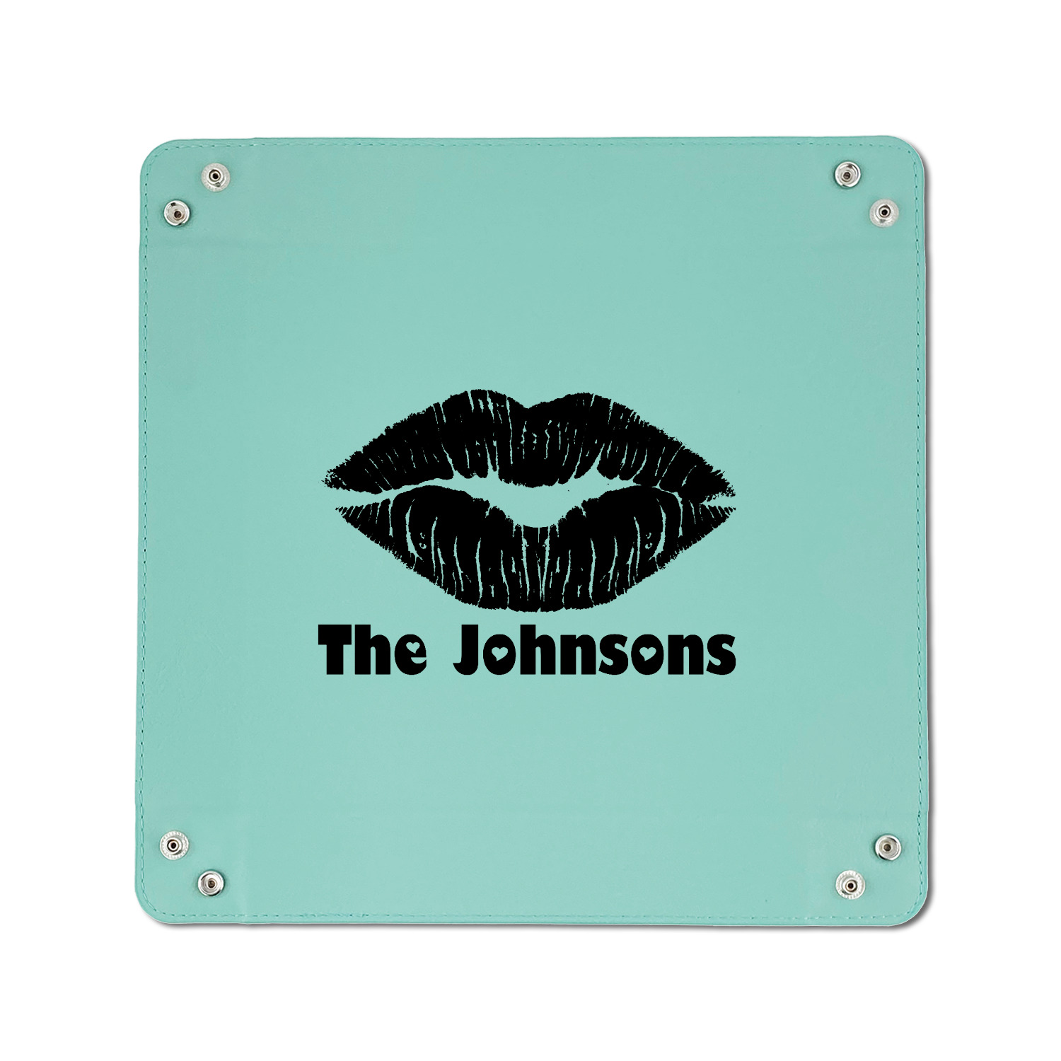Mustache & Lip Designs for Faux Leather Dice Trays - 6" x 6" - Teal