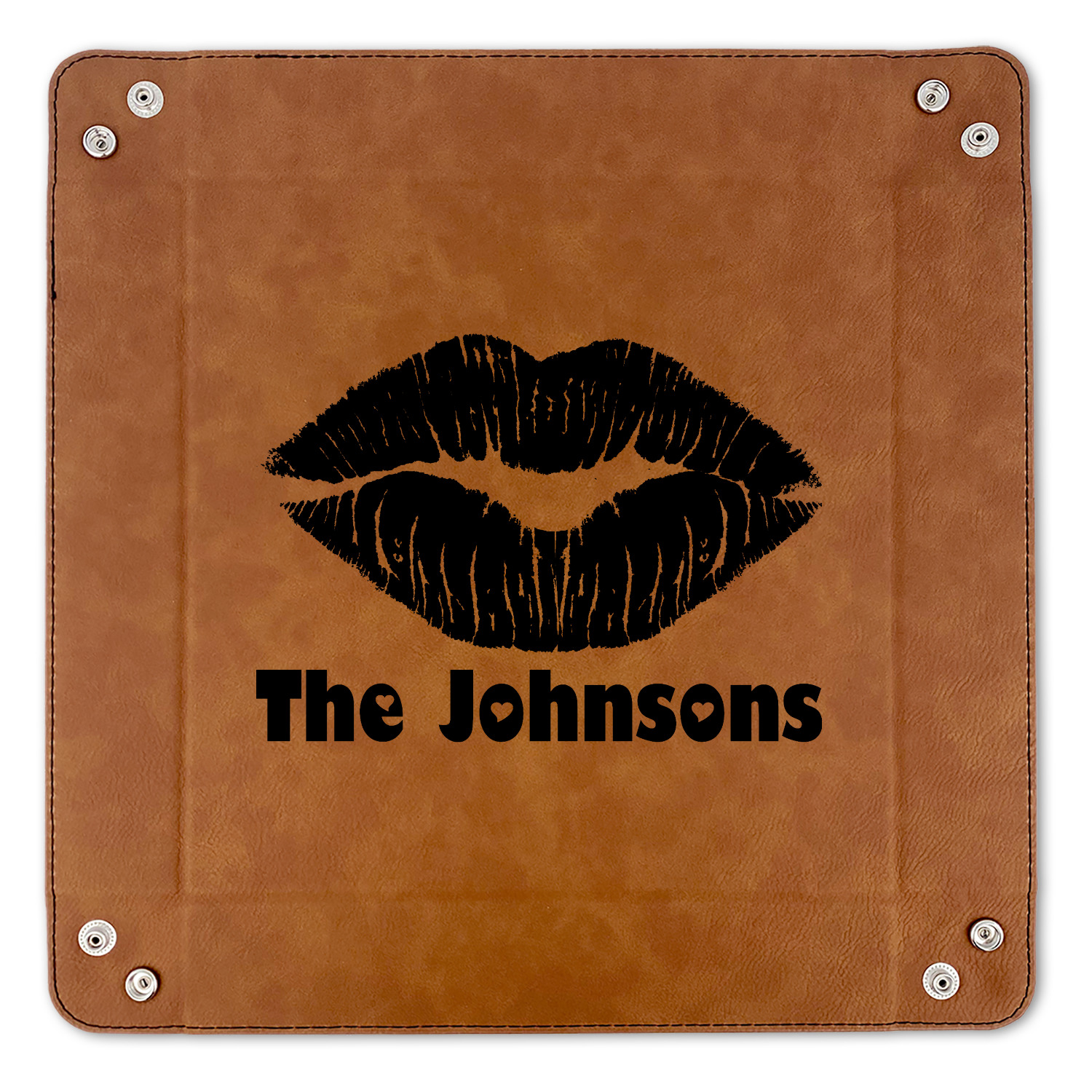 Mustache & Lip Designs for Faux Leather Dice Trays - 9" x 9" - Rawhide