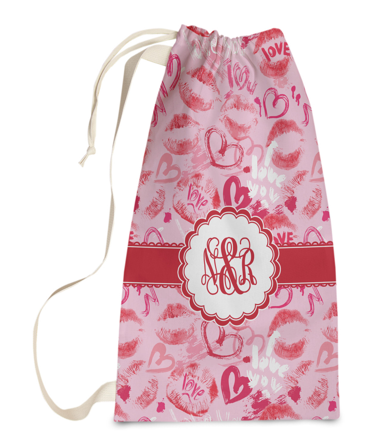 Carry your laundry in style with these customized laundry bags. Available in two sizes, featuring a natural colored woven strap and a cinch cord, these bags hold a lot of clothes or anything else you want to fit in them.