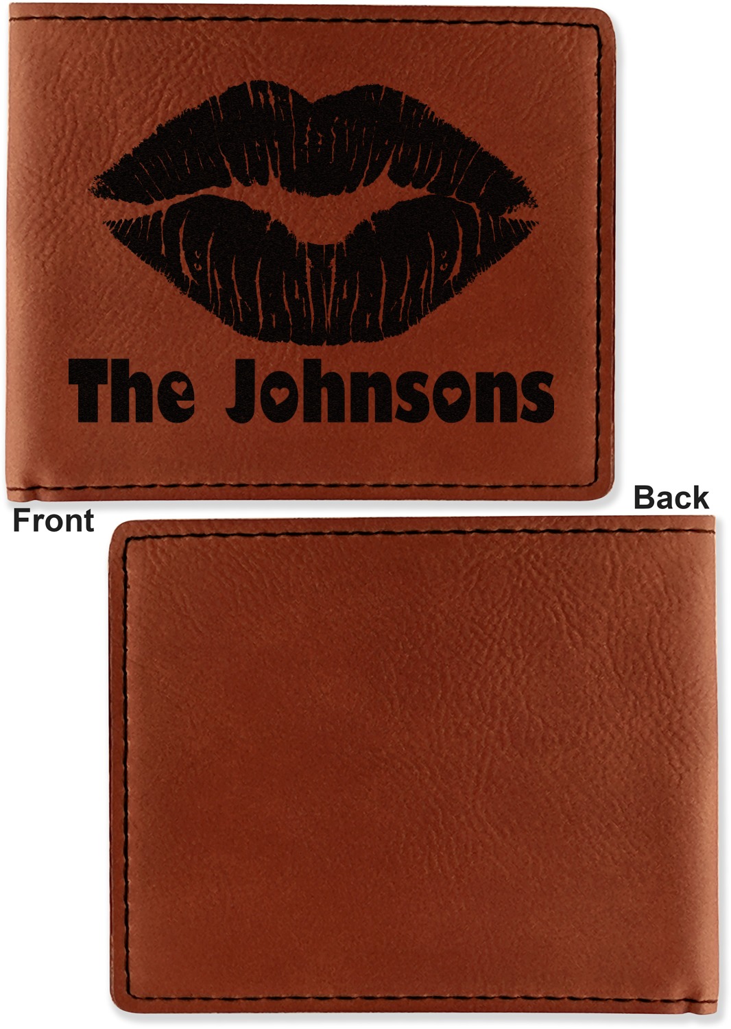 Your bifold wallet will be personalized by laser engraving, which will be a black color on the wallet. Choose a graphic, text, or monogram to personalize your wallet. There are thousands of choices in our design center.