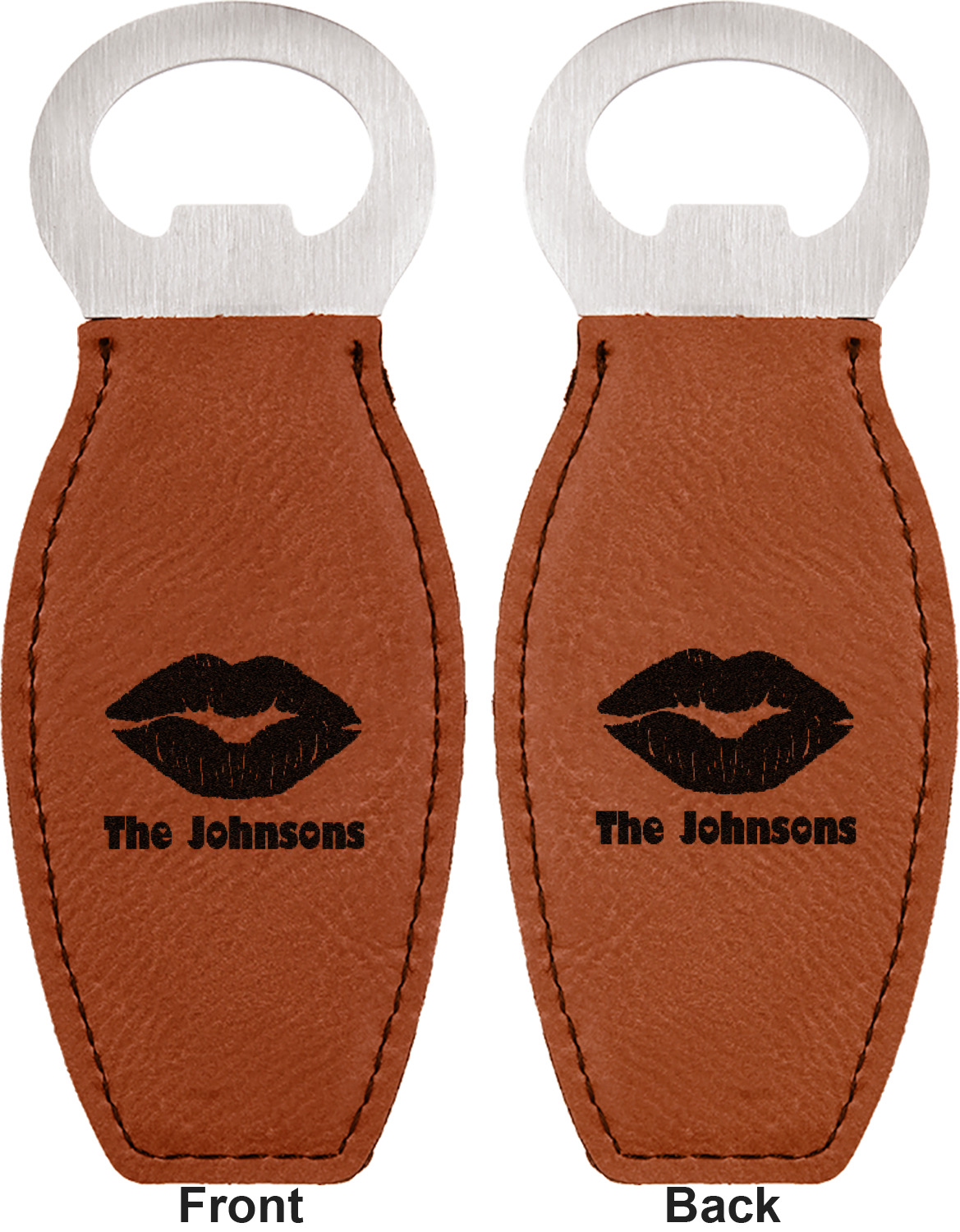 Built from stainless steel, these custom bottle openers are wrapped in a cognac-colored leatherette. Sharp, black stitching lines the edges for extra durability and a finished touch. Your personalization is laser-engraved onto the surface of this leatherette, leaving behind a crisp, black coloration. At 4.6 by 1.8 inches, this beer bottle opener gives you much of leverage when trying to open a stubborn bottle. On the opposite end of the opener, you'll find a magnet that you can use to display your new, unique bottle opener!