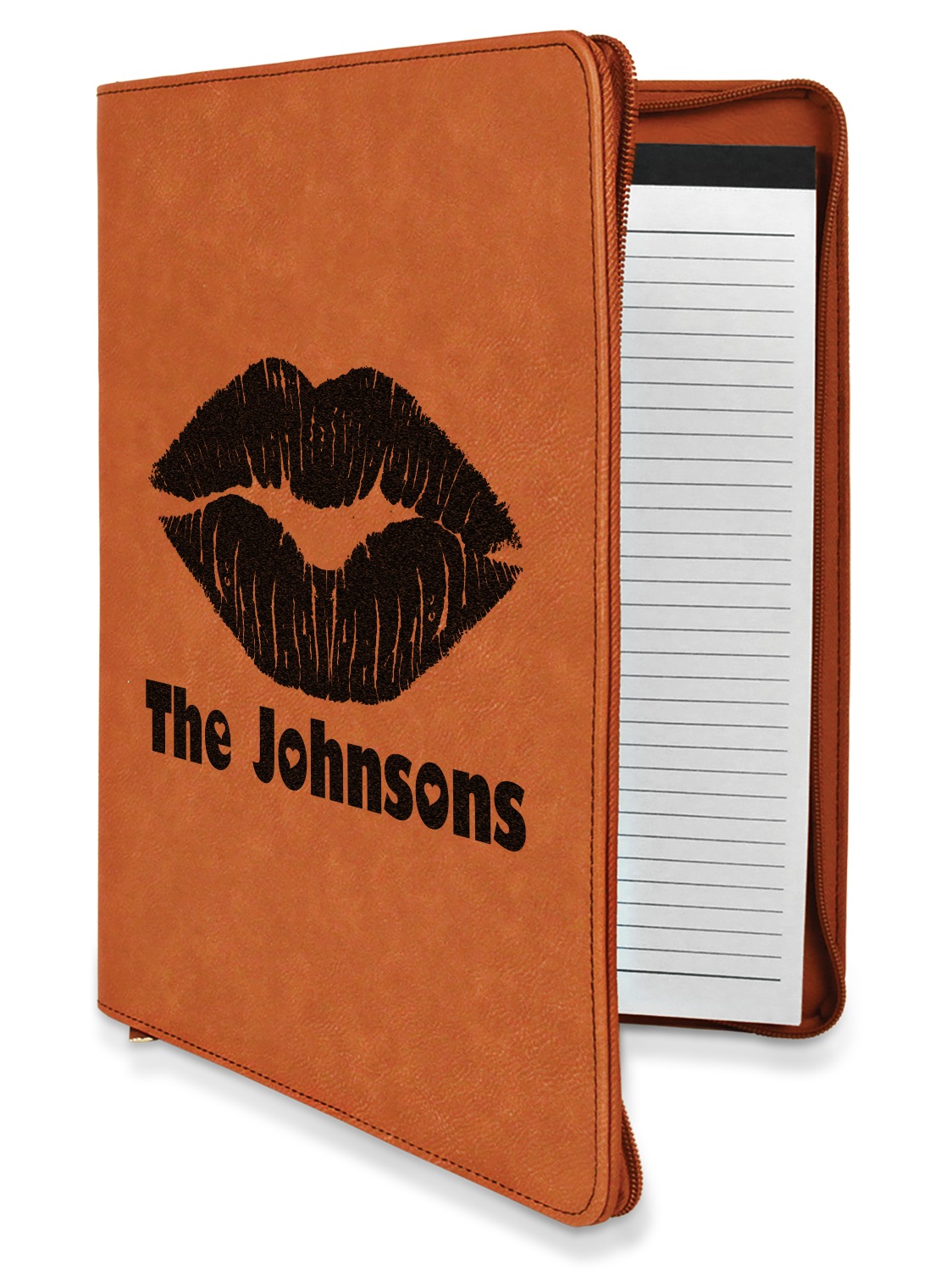 Mustache & Lip Designs for Leatherette Zipper Portfolios with Notepad - Single-Sided