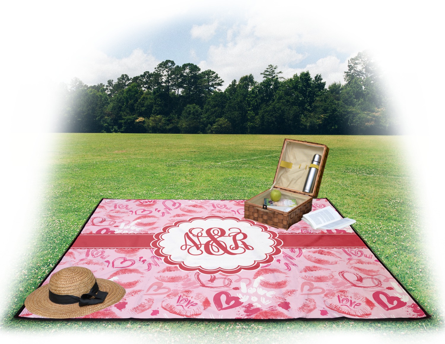 This picnic blanket is perfect for hanging out with your friends at the park or anywhere outside. The top of the blanket is made of a super soft microfiber fleece. The bottom of the blanket is made of a black material similar to a rain jacket and is water repellent as well. This will keep any wet spots on the ground from soaking through your picnic blanket. No one likes a wet blanket. The blanket measures at approximately 50" x 59" and has a nicely finished ribbon edge.