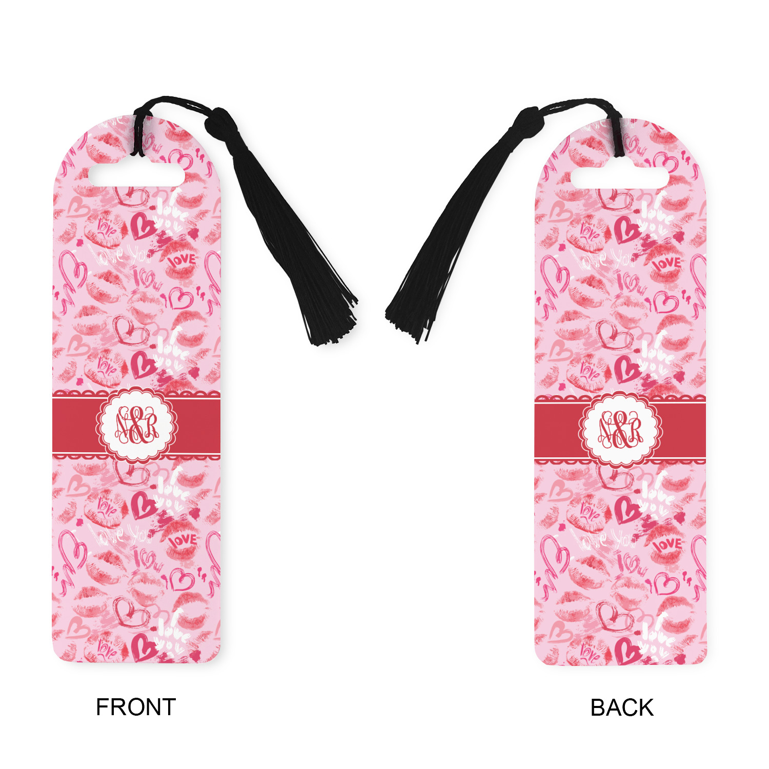 Made from a durable, flexible plastic, these bookmarks are printed with your custom design on them. With the tassel on them they make it easy to find your page in your book. These are a rectangular shape 7 1/4 inches tall with a rounded top and are approximately 2 1/4 inches wide.