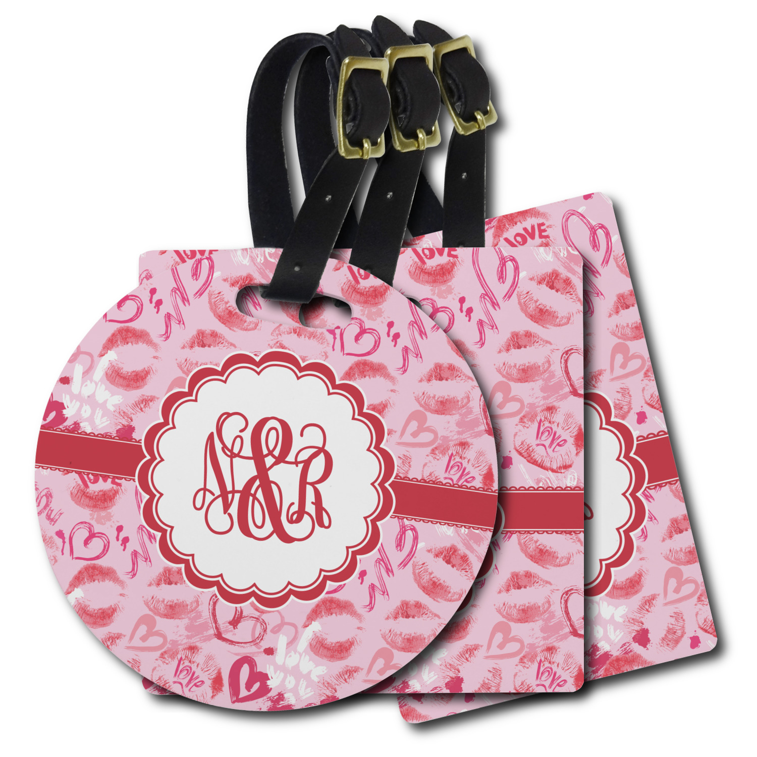 These personalized bag tags are sold in a variety of shapes, so that you may find the product that meets your vision exactly. We sell a round luggage tag, which measures at approximately 4" x 4". Our square luggage tag is about 3.5" x 3.5", while our rectangular version is 2.75" x 4 ".