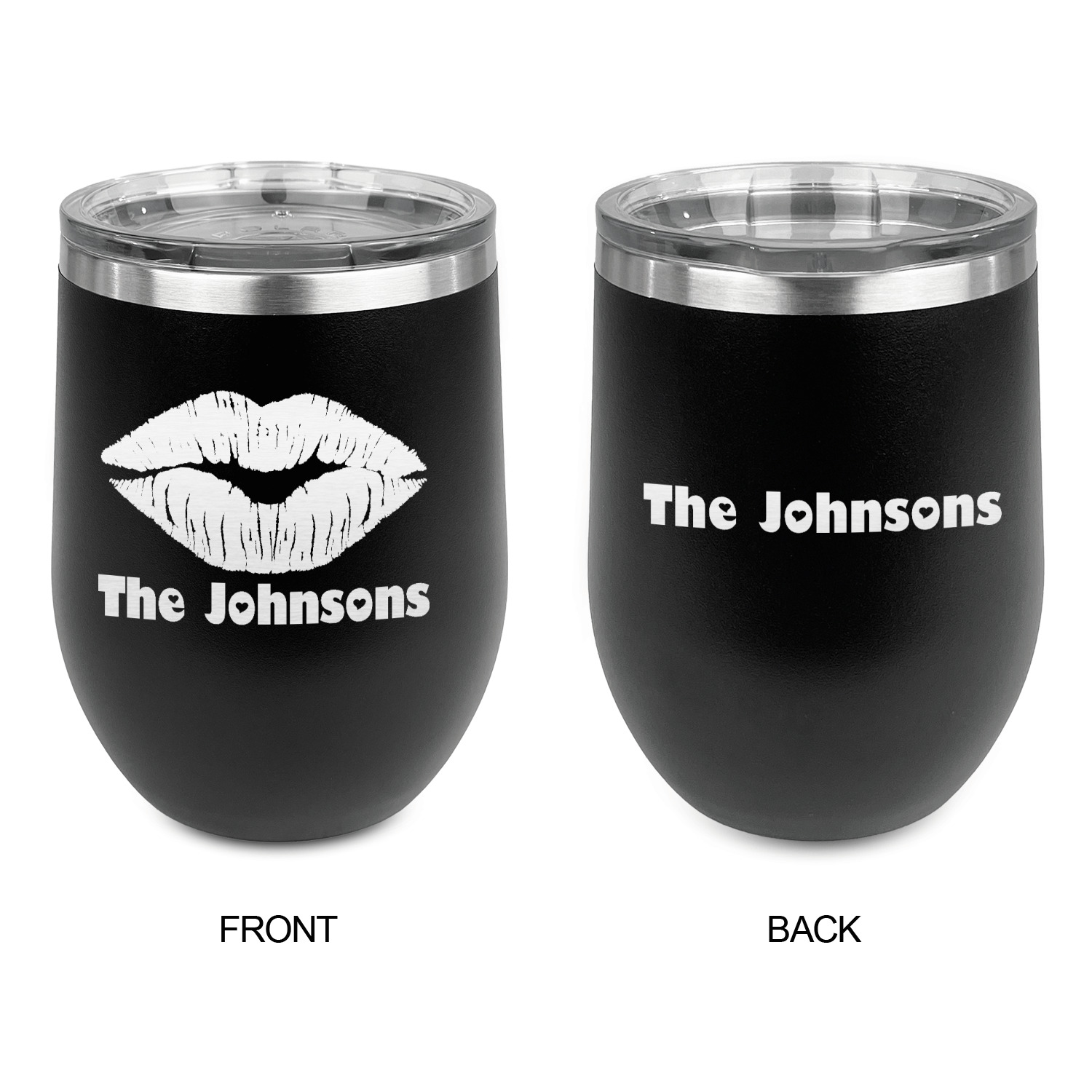 Mustache & Lip Designs for Stemless Stainless Steel Wine Tumblers - Black - Double-Sided