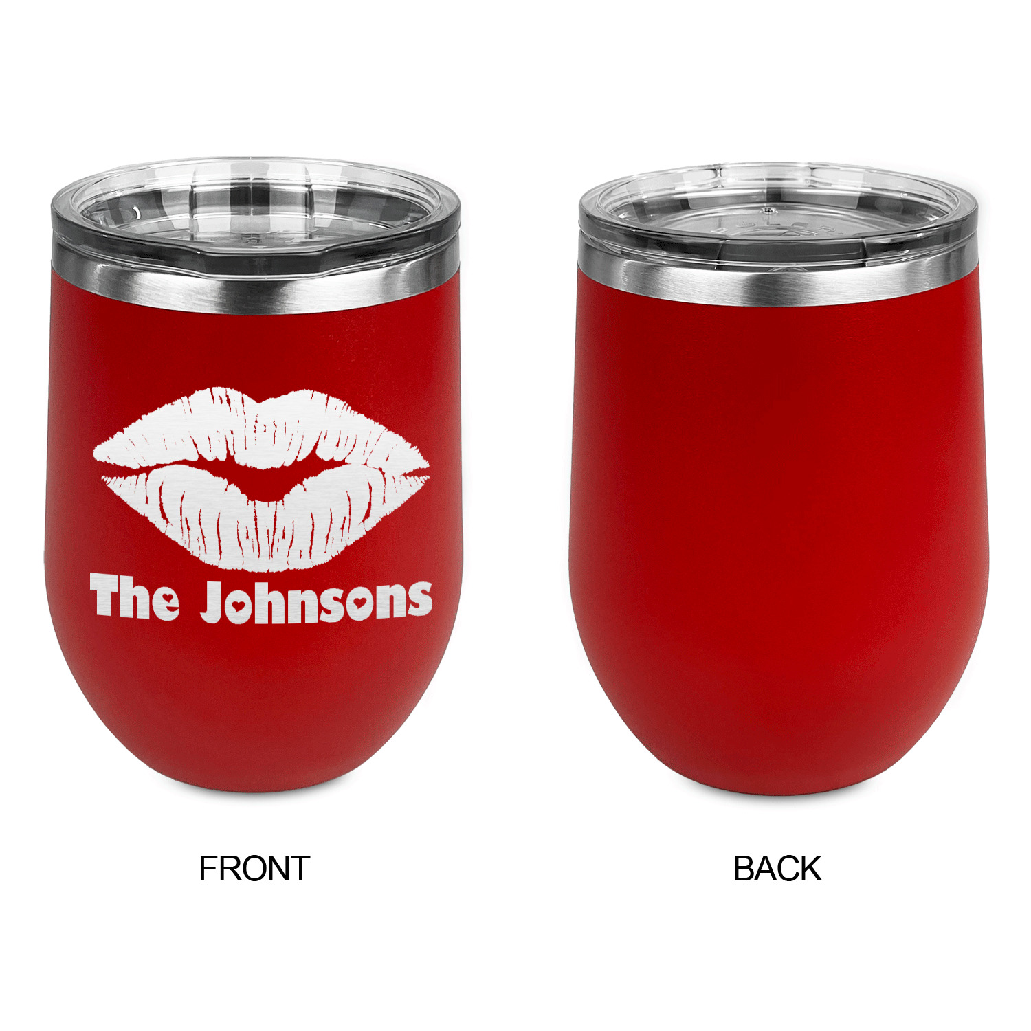 Mustache & Lip Designs for Stemless Stainless Steel Wine Tumblers - Red - Single-Sided