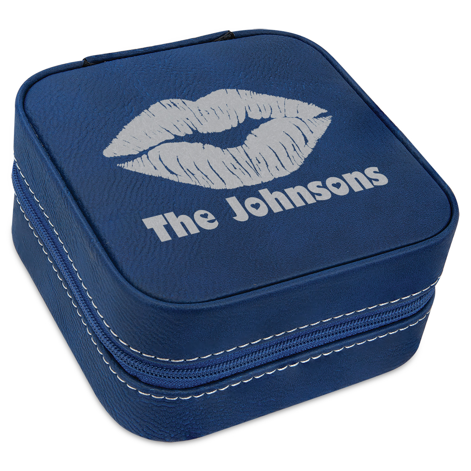 Mustache & Lip Designs for Travel Jewelry Boxes - Navy Blue Leather
