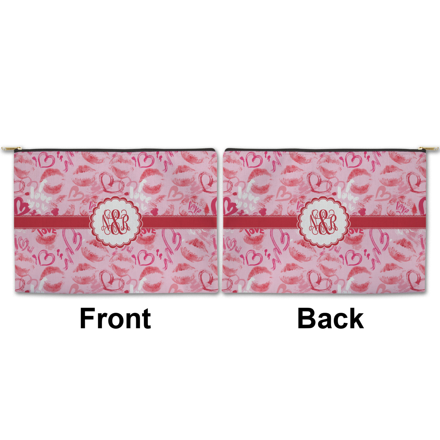 You can design both the front and the back of the pouch - same design, two complementary designs or two totally different designs - the choice is yours! We offer many different personalization styles i.e. name, name & initial, monograms - so the choice to personalize is also yours.