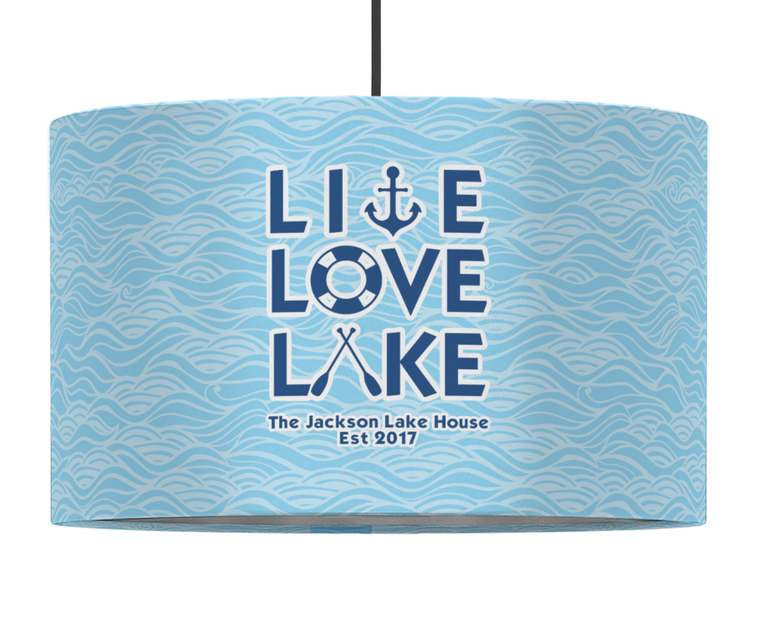 These pendant lampshades are in a cylindrical, drum shape. Available in 2 sizes - 16 inch diameter and a height of 10 inches or 12 inch diameter with a height of 8 inches, this lantern pendant light will not go unnoticed in your home. The interior of this light shade is made of flexible, smooth plastic, and the base color of the lamp is white. Your personalization is displayed on the exterior of this custom lampshade. The fabric shades the fabric fully wraps the ring for a sleek look. Your purchase includes a 12 foot long cord that has a convenient on and off switch attached, the cord is black in color with a tasteful cloth covering over the cord to add the sophisticated look to this light fixture. This lamp can fit a 60 or 75 watt light bulb, but the bulb is not included. Please scroll through the images above to learn more about the structure and shaping of this lamp compared to the other ones we offer.