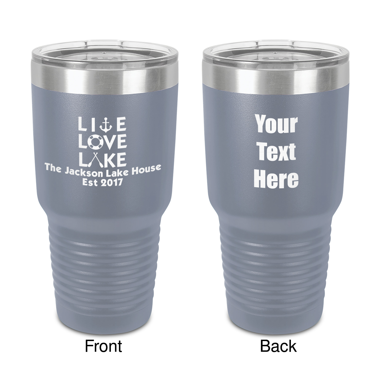 With the 5 colors - Black, Navy, Red, Pink and Coral, you are sure to find a cup to fit your personality. You can chose to engrave on the front or the front and back of the cup. Use our design studio to design your own cup and we laser engrave it for you.