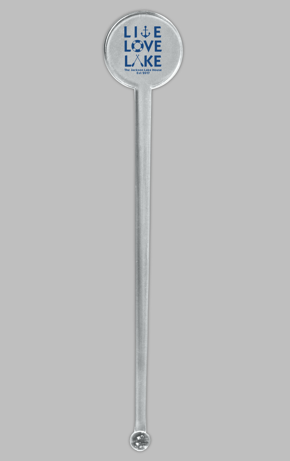 This design has a beautiful background with abstract waves that are a calming light blue. The main feature of this design is the quote. The quote used for this design says "Live Love Lake," but remember that we have many other lake house quotes to choose from. Underneath the quote you are able to put your personalization!