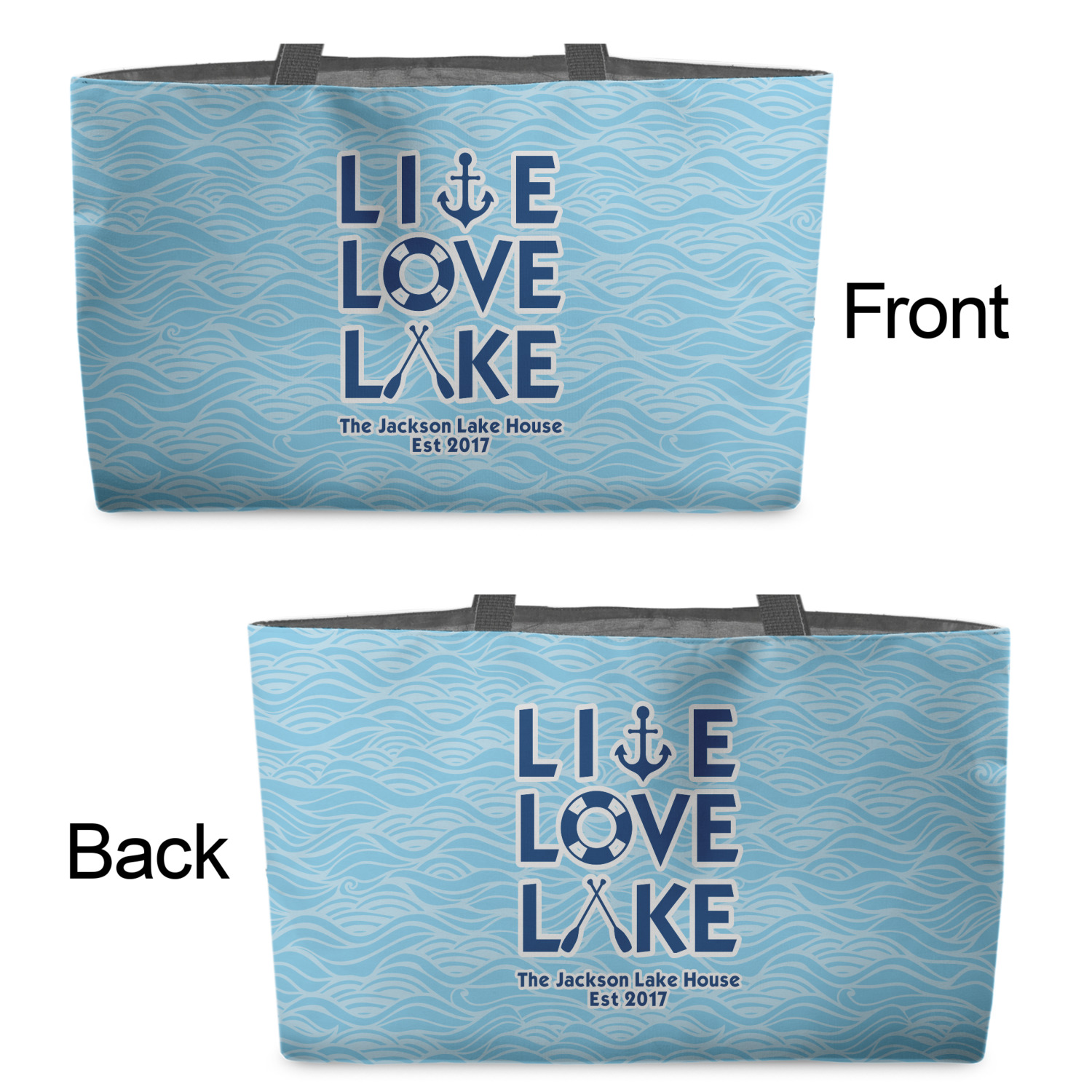 You can design the totes with a design on the front and another one on the back. The two designs can be identical or completely different. The choice is yours.