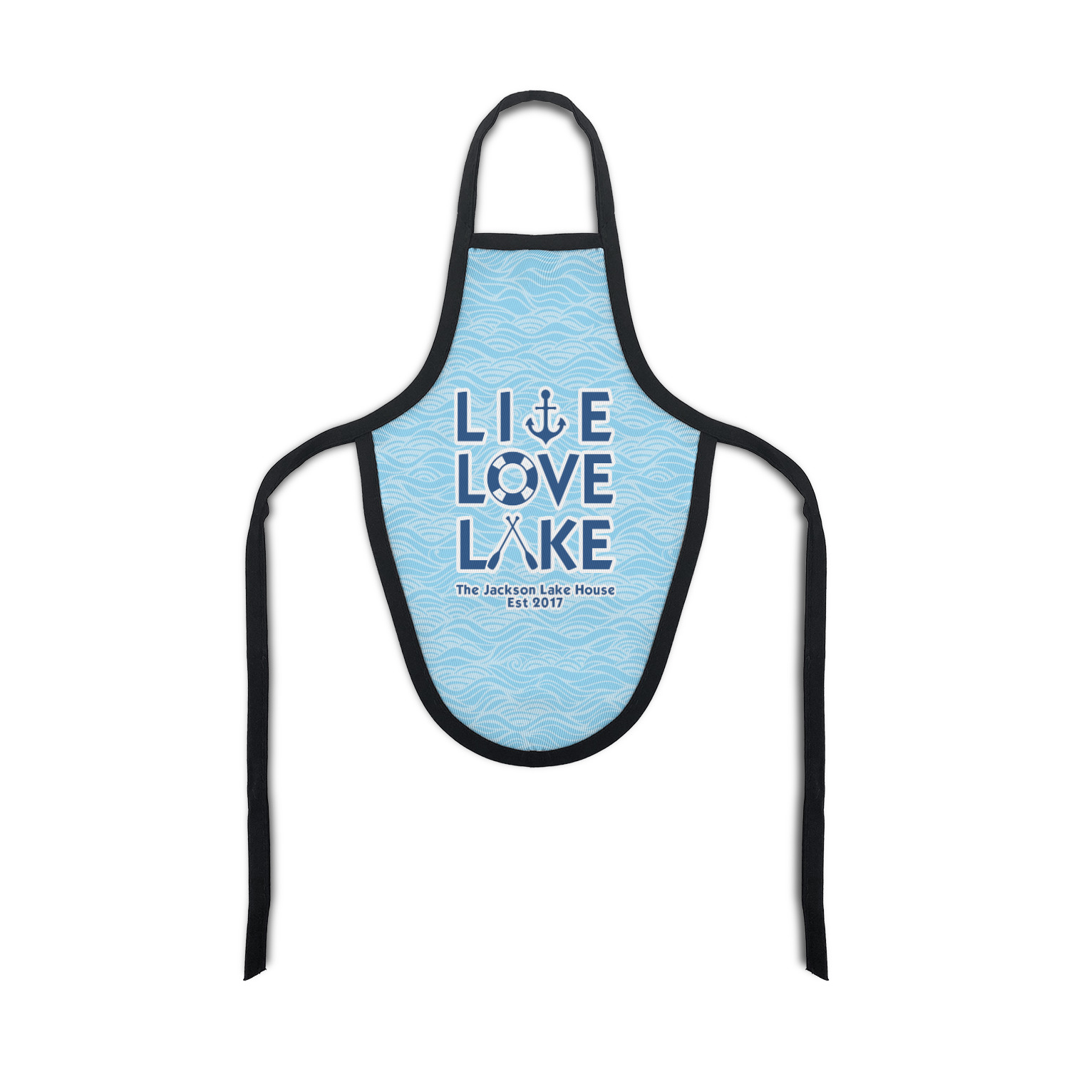 This design has a beautiful background with abstract waves that are a calming light blue. The main feature of this design is the quote. The quote used for this design says "Live Love Lake," but remember that we have many other lake house quotes to choose from. Underneath the quote you are able to put your personalization!