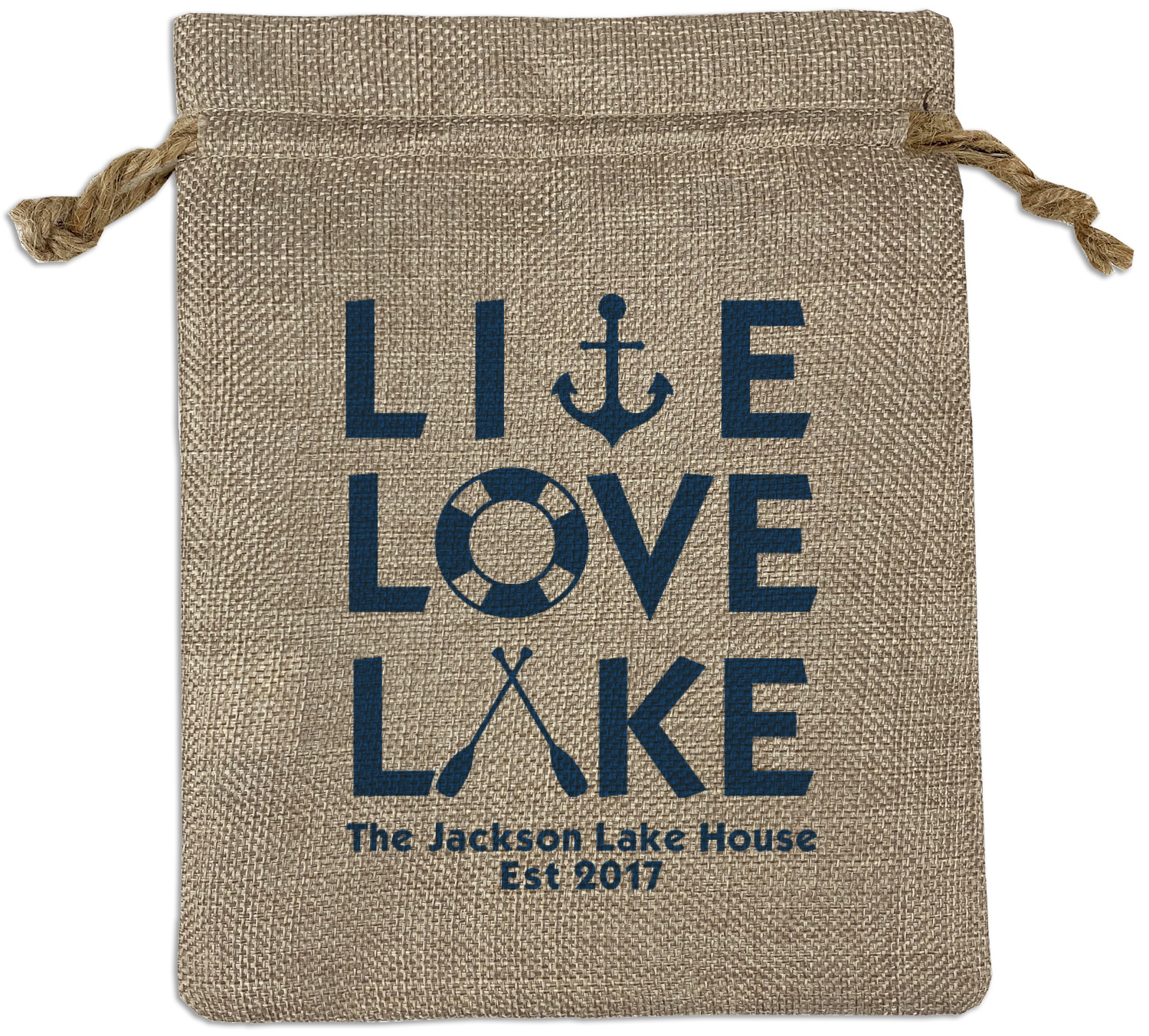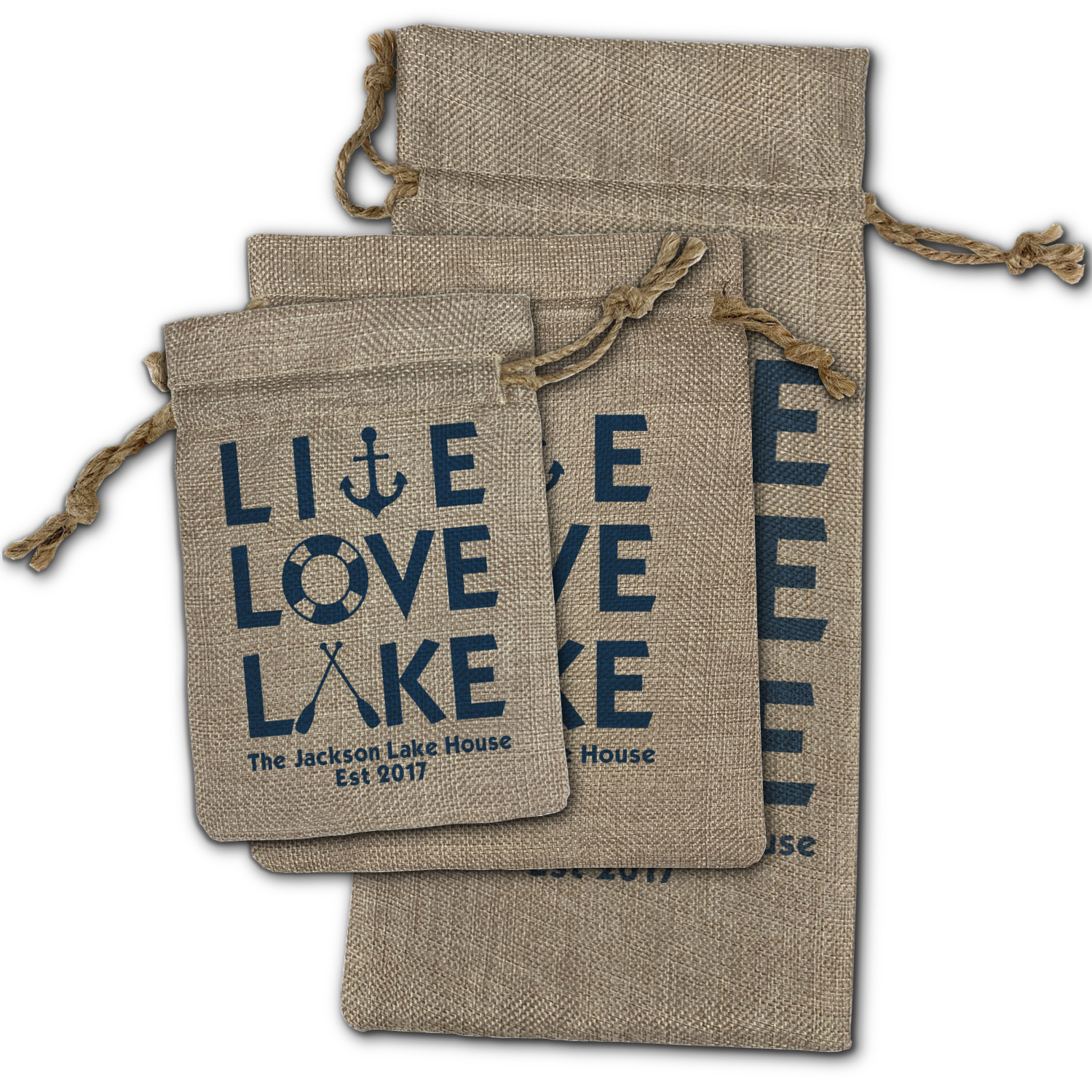 We sell our Burlap Gift Bags in 3 variant sized bags. Made with burlap polyester, each personalized bag can be secured with a twine drawstring pull. Your custom design is available to print on one side or both sides - completely up to you! The sizes of the bags measure approximately 4.5" x 6.5" for the smallest size, 6.5" x 8.0" for the medium size, and 6.5" x 13.5" for the large-sized bag.