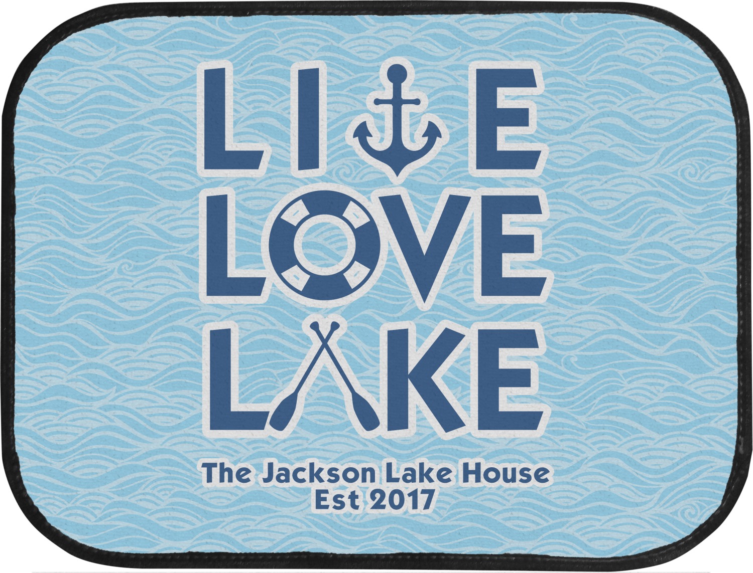 This design has a beautiful background with abstract waves that are a calming light blue. The main feature of this design is the quote. The quote used for this design says "Live Love Lake," but remember that we have many other lake house quotes to choose from. Underneath the quote you are able to put your personalization!