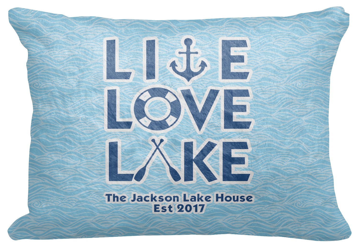 This design has a beautiful background with abstract waves that are a calming light blue. The main feature of this design is the quote. The quote used for this design says "Live Love Lake," but remember that we have many other lake house quotes to choose from. Underneath the quote you are able to put your personalization!