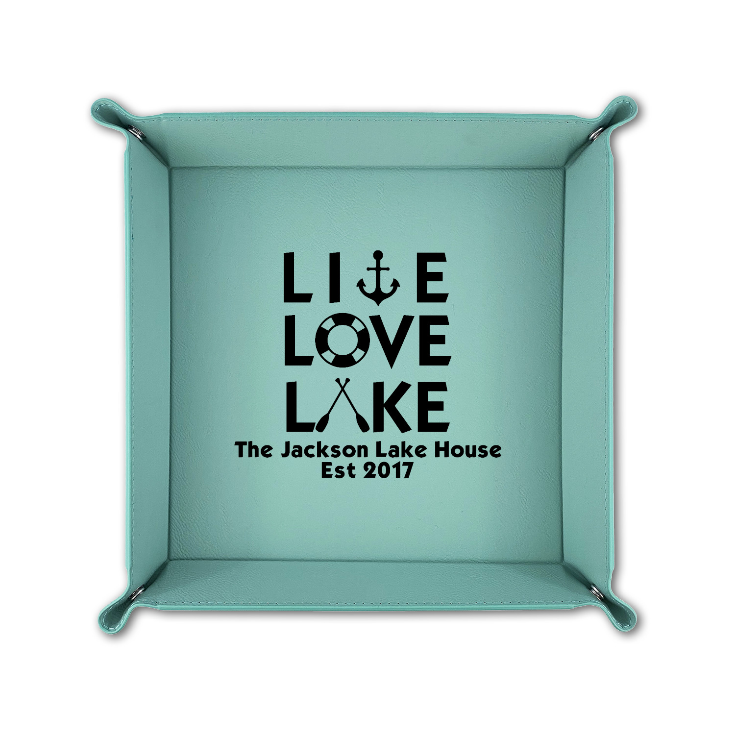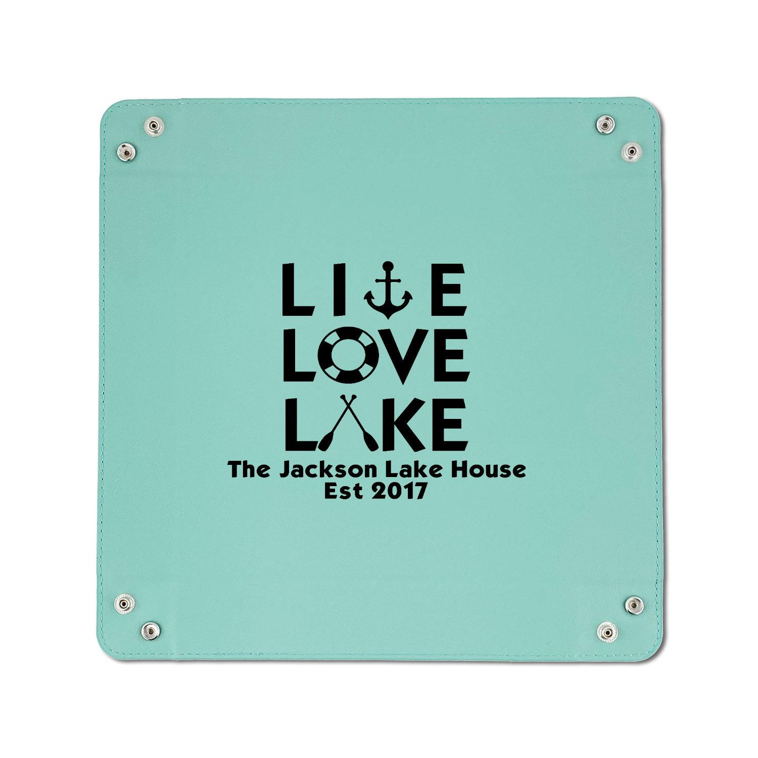 This design has a beautiful background with abstract waves that are a calming light blue. The main feature of this design is the quote. The quote used for this design says "Live Love Lake," but remember that we have many other lake house quotes to choose from. Underneath the quote you are able to put your personalization!