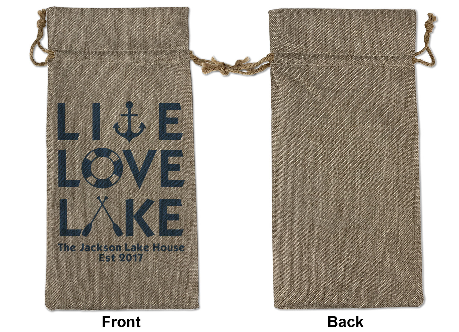 We sell our Burlap Gift Bags in 3 variant sized bags. Made with burlap polyester, each personalized bag can be secured with a twine drawstring pull. Your custom design is available to print on one side or both sides - completely up to you! The sizes of the bags measure approximately 4.5" x 6.5" for the smallest size, 6.5" x 8.0" for the medium size, and 6.5" x 13.5" for the large-sized bag.