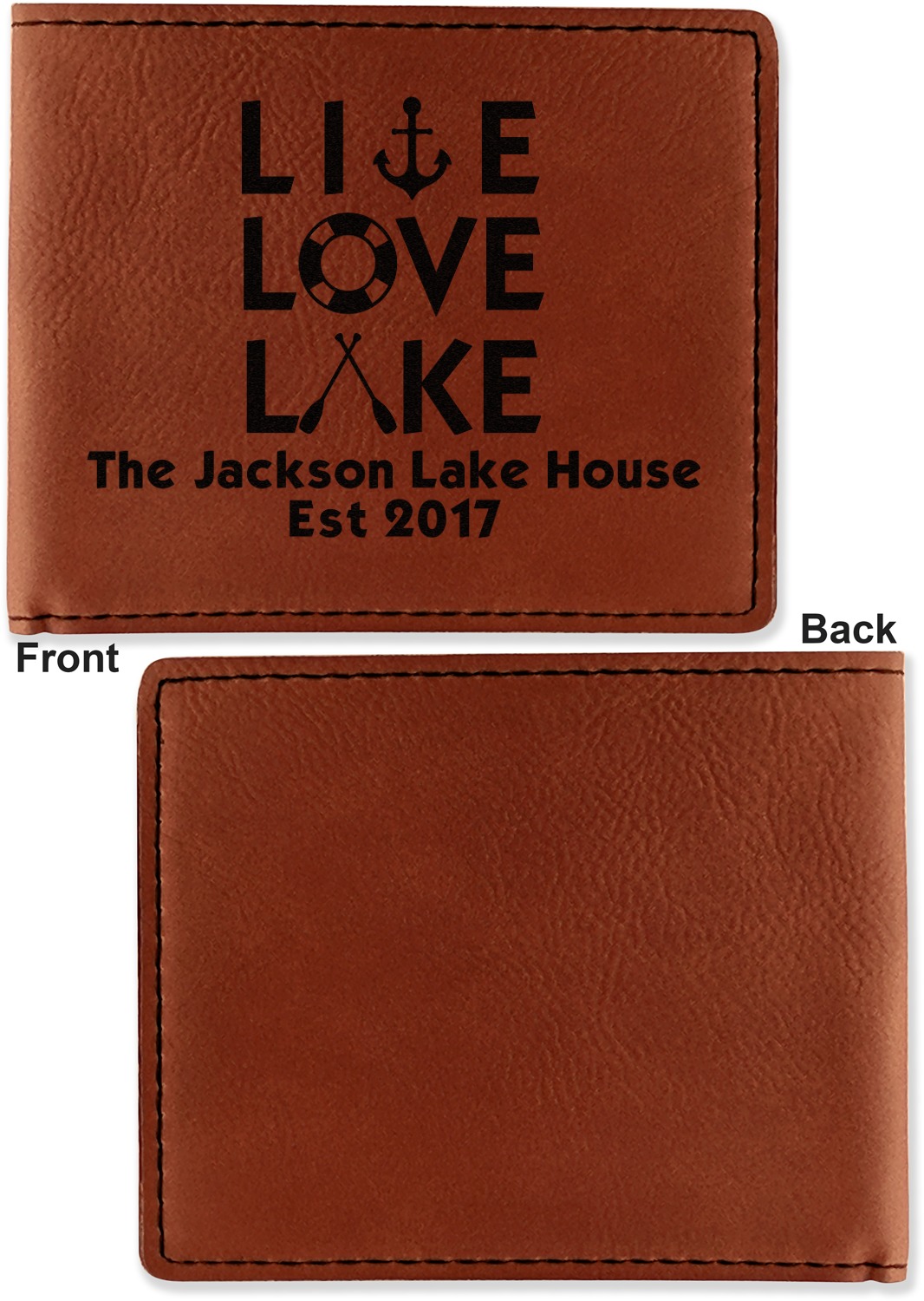 Your bifold wallet will be personalized by laser engraving, which will be a black color on the wallet. Choose a graphic, text, or monogram to personalize your wallet. There are thousands of choices in our design center.