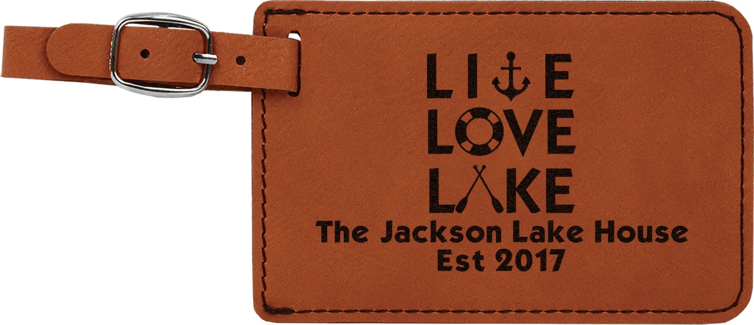 This luggage tag will surely be able to get you started in having all the right tools for traveling. It is made of a beautiful leatherette material that is a nice shade of cognac brown. The front of the tag is where your design goes. The sturdy black stitching gives your design an extra pop and gives the tag extra durability. The back of the tag has a clear vinyl window where you can slip in your address card. The tag comes with a great little buckle strap that you can easily use to clip to your suitcase. The tag itself measures at approximately 5.5"W x 4.25"H.