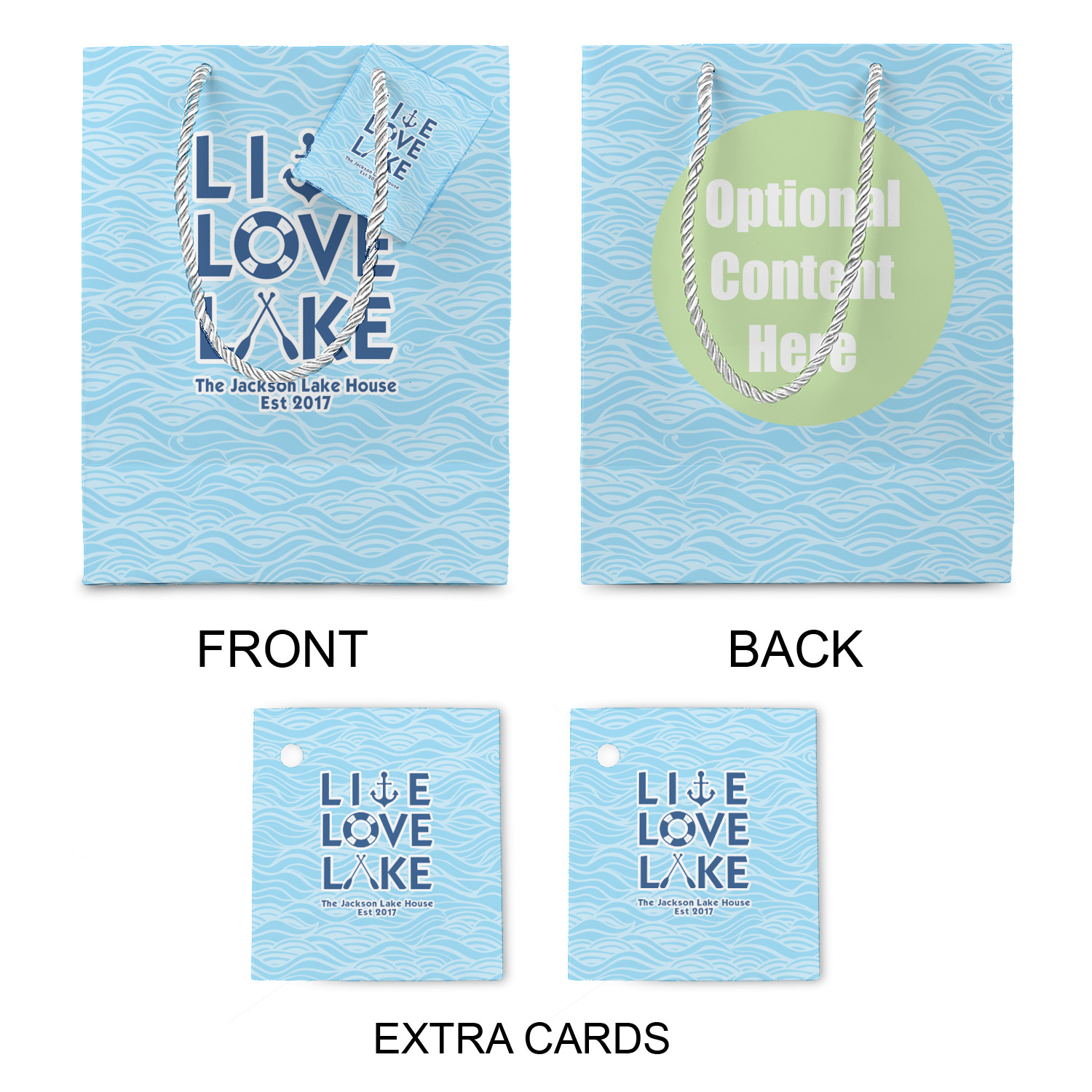 The bottom of the bag has a cardstock base to make the base more sturdy to hold up to all of your gifts. Each bag comes with one card on the rope handle and at least 1 extra card.