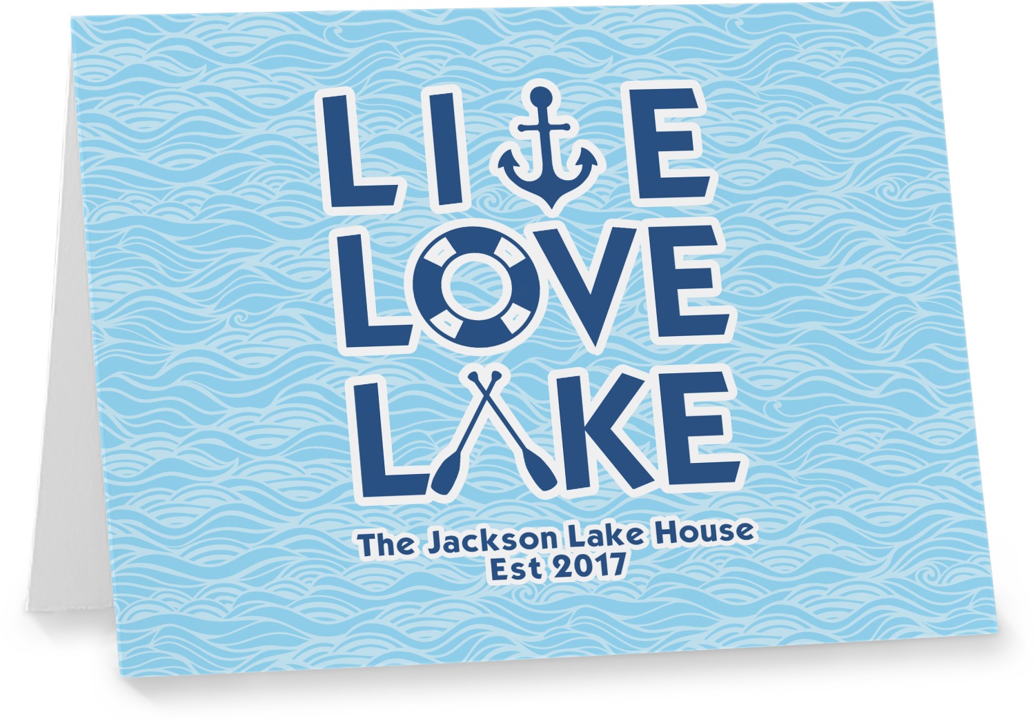 This design has a beautiful background with abstract waves that are a calming light blue. The main feature of this design is the quote. The quote used for this design says "Live Love Lake," but remember that we have many other lake house quotes to choose from. Underneath the quote you are able to put your personalization!
