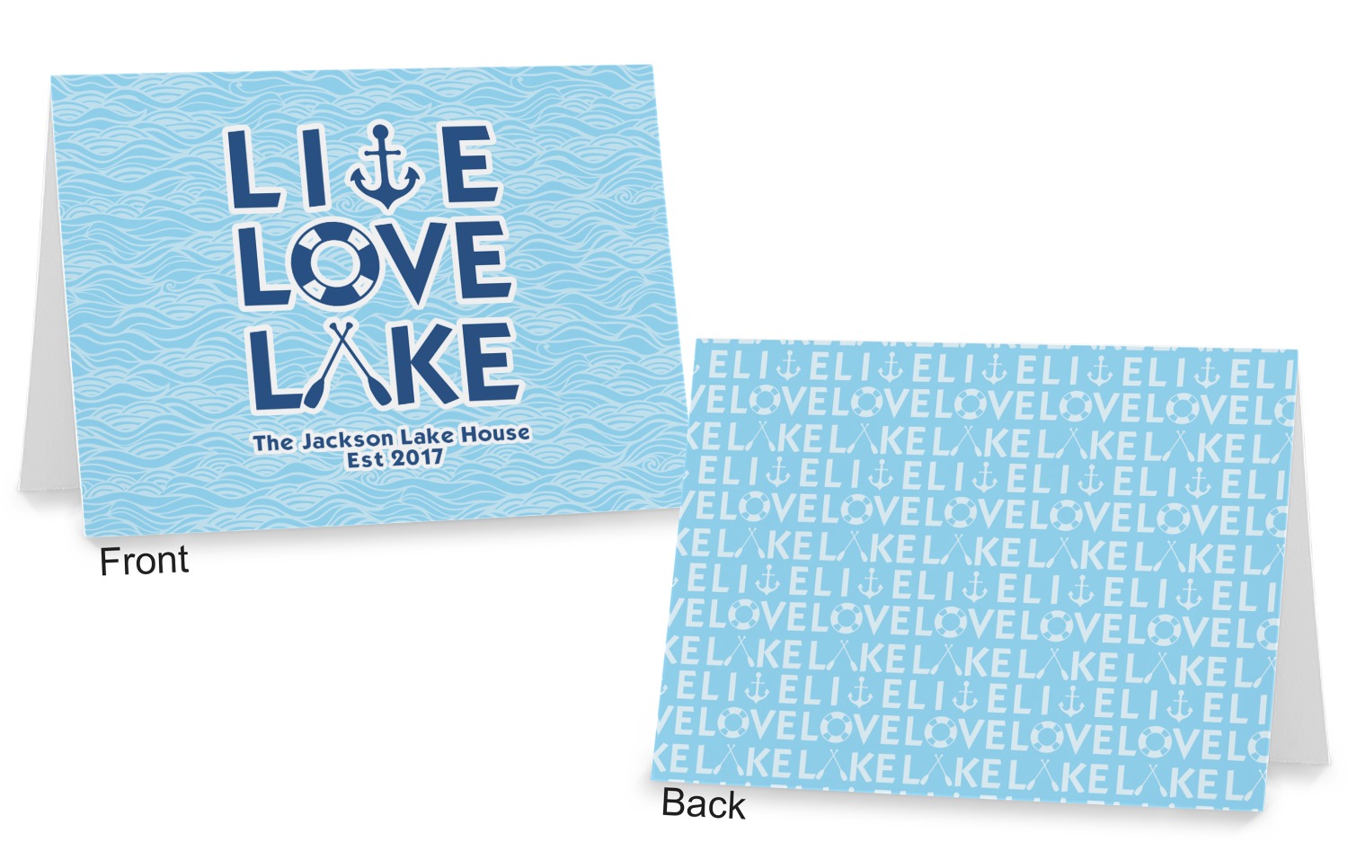 Our custom folded note cards are printed on premium 100lb. card stock and comes with white envelopes. The note card measure 5.5 by 4.25 inches and are blank on the inside for your handwritten message.
