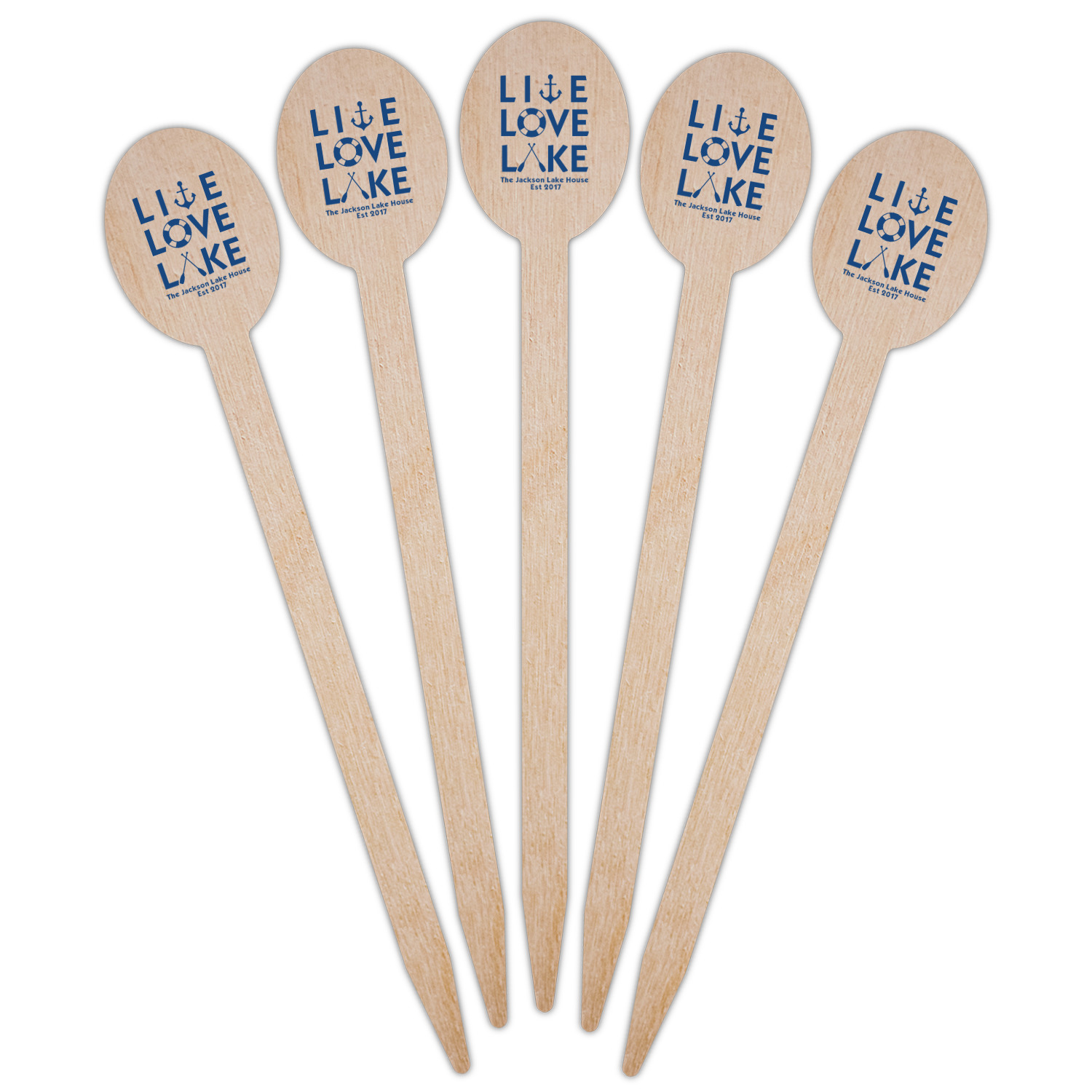 This design has a beautiful background with abstract waves that are a calming light blue. The main feature of this design is the quote. The quote used for this design says "Live Love Lake," but remember that we have many other lake house quotes to choose from. Underneath the quote you are able to put your personalization!