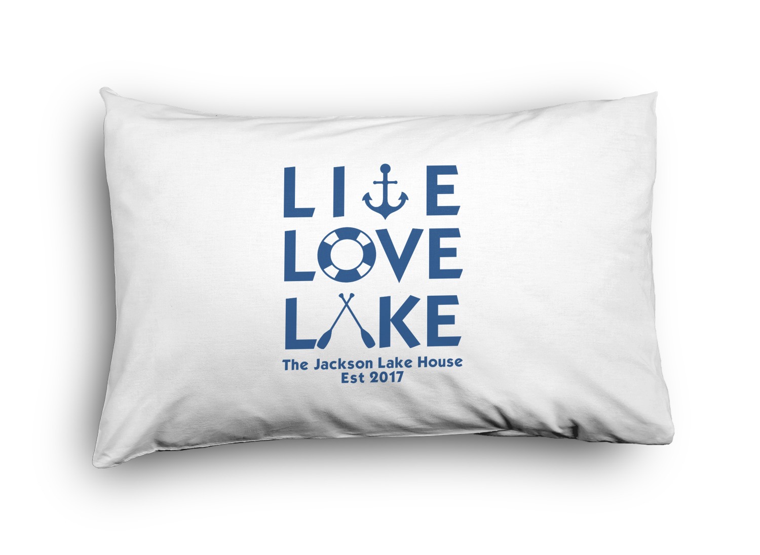 This design has a beautiful background with abstract waves that are a calming light blue. The main feature of this design is the quote. The quote used for this design says "Live Love Lake," but remember that we have many other lake house quotes to choose from. Underneath the quote you are able to put your personalization!