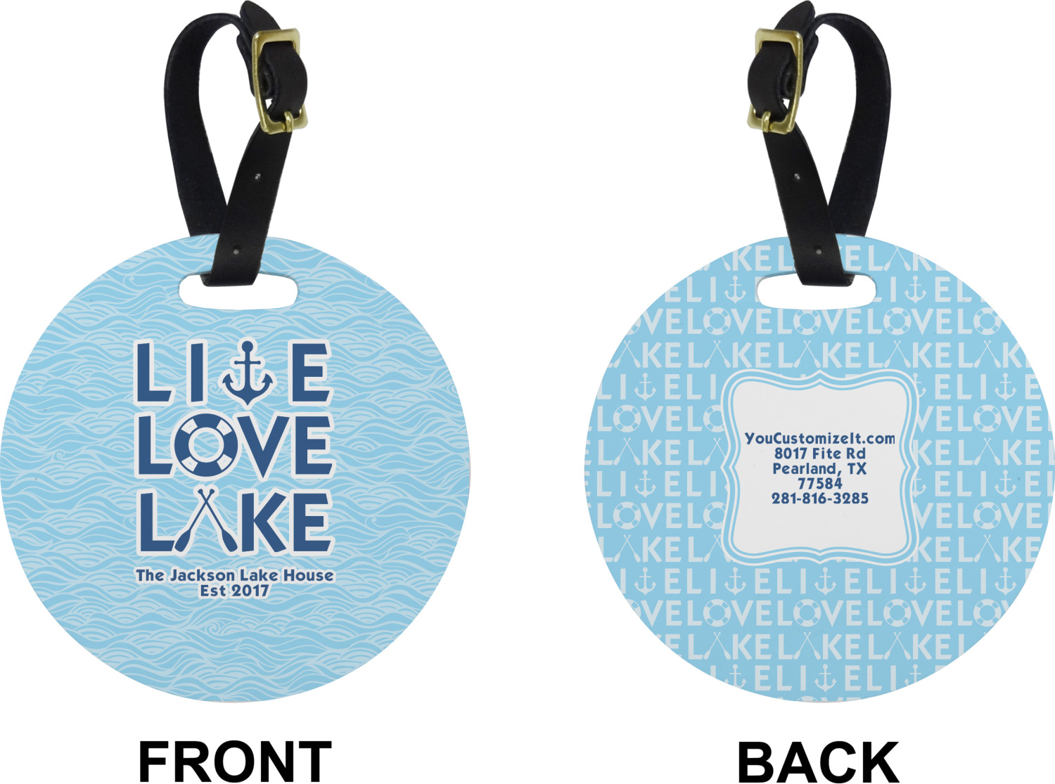 These personalized bag tags are sold in a variety of shapes, so that you may find the product that meets your vision exactly. We sell a round luggage tag, which measures at approximately 4" x 4". Our square luggage tag is about 3.5" x 3.5", while our rectangular version is 2.75" x 4 ".