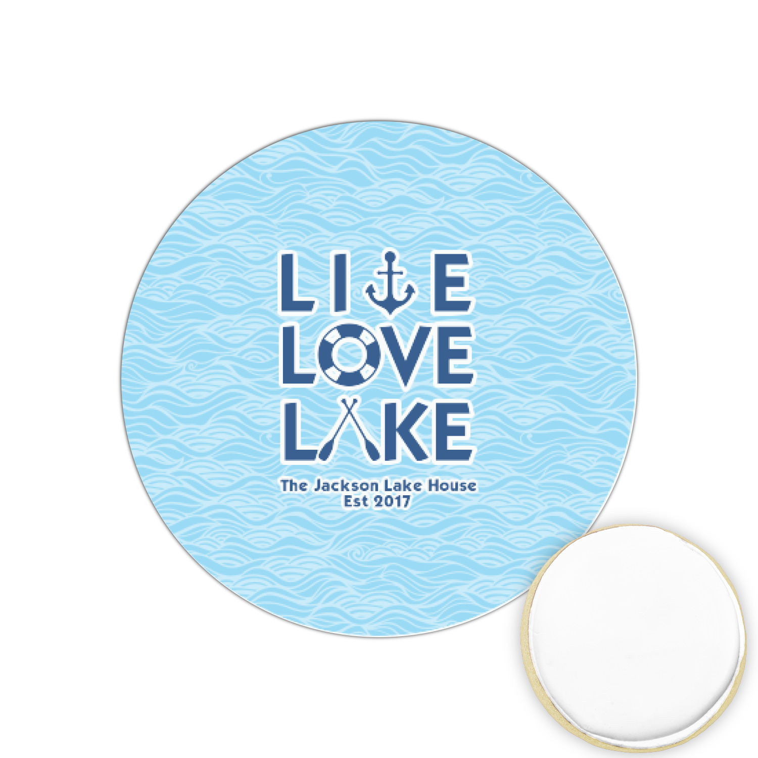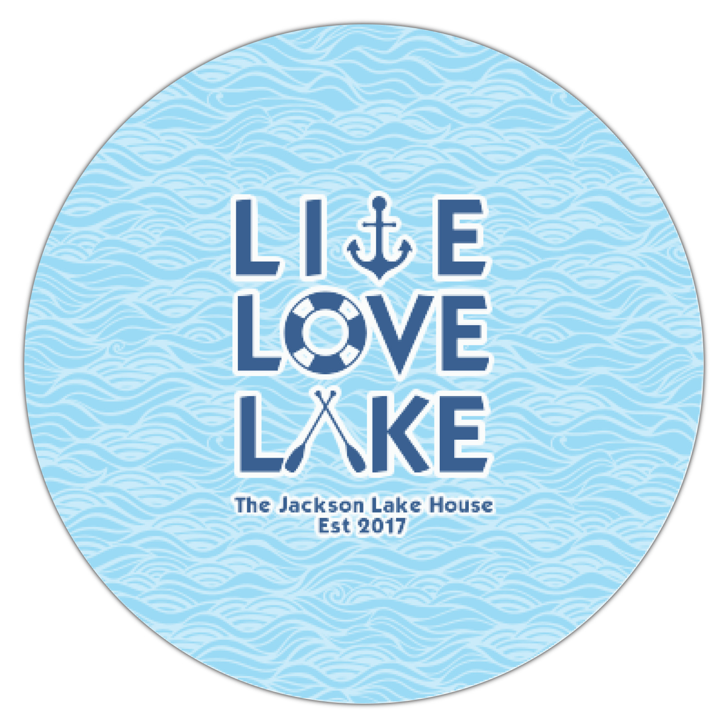 This design has a beautiful background with abstract waves that are a calming light blue. The main feature of this design is the quote. The quote used for this design says "Live Love Lake," but remember that we have many other lake house quotes to choose from. Underneath the quote you are able to put your personalization!