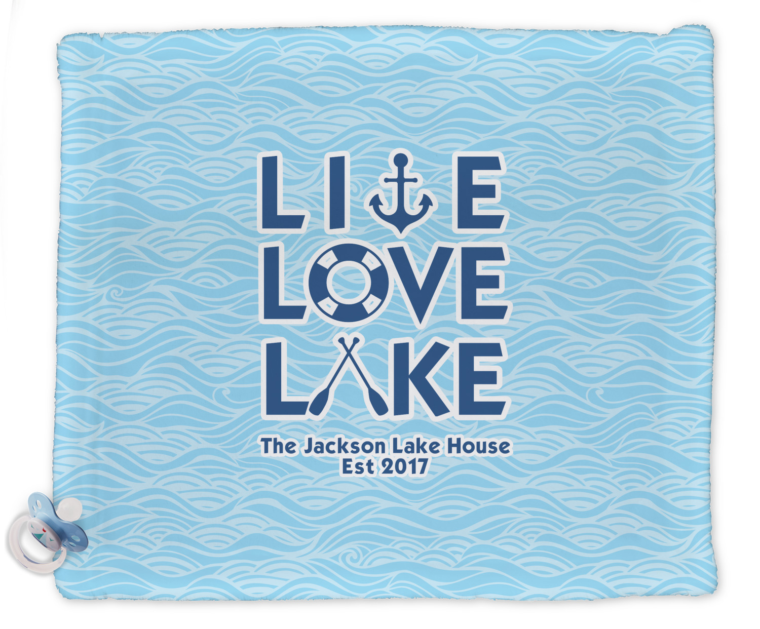 This design has a beautiful background with abstract waves that are a calming light blue. The main feature of this design is the quote. The quote used for this design says "Live Love Lake," but remember that we have many other lake house quotes to choose from. Underneath the quote you are able to put your personalization!