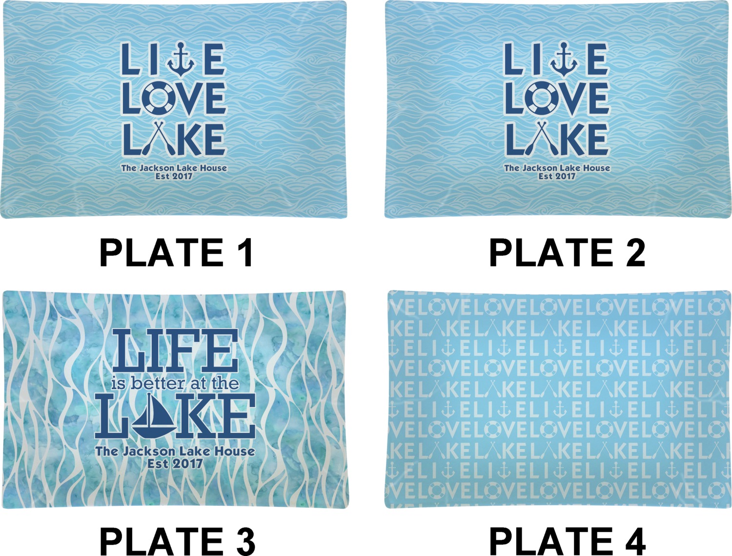This design has a beautiful background with abstract waves that are a calming light blue. The main feature of this design is the quote. The quote used for this design says "Live Love Lake," but remember that we have many other lake house quotes to choose from. Underneath the quote you are able to put your personalization!